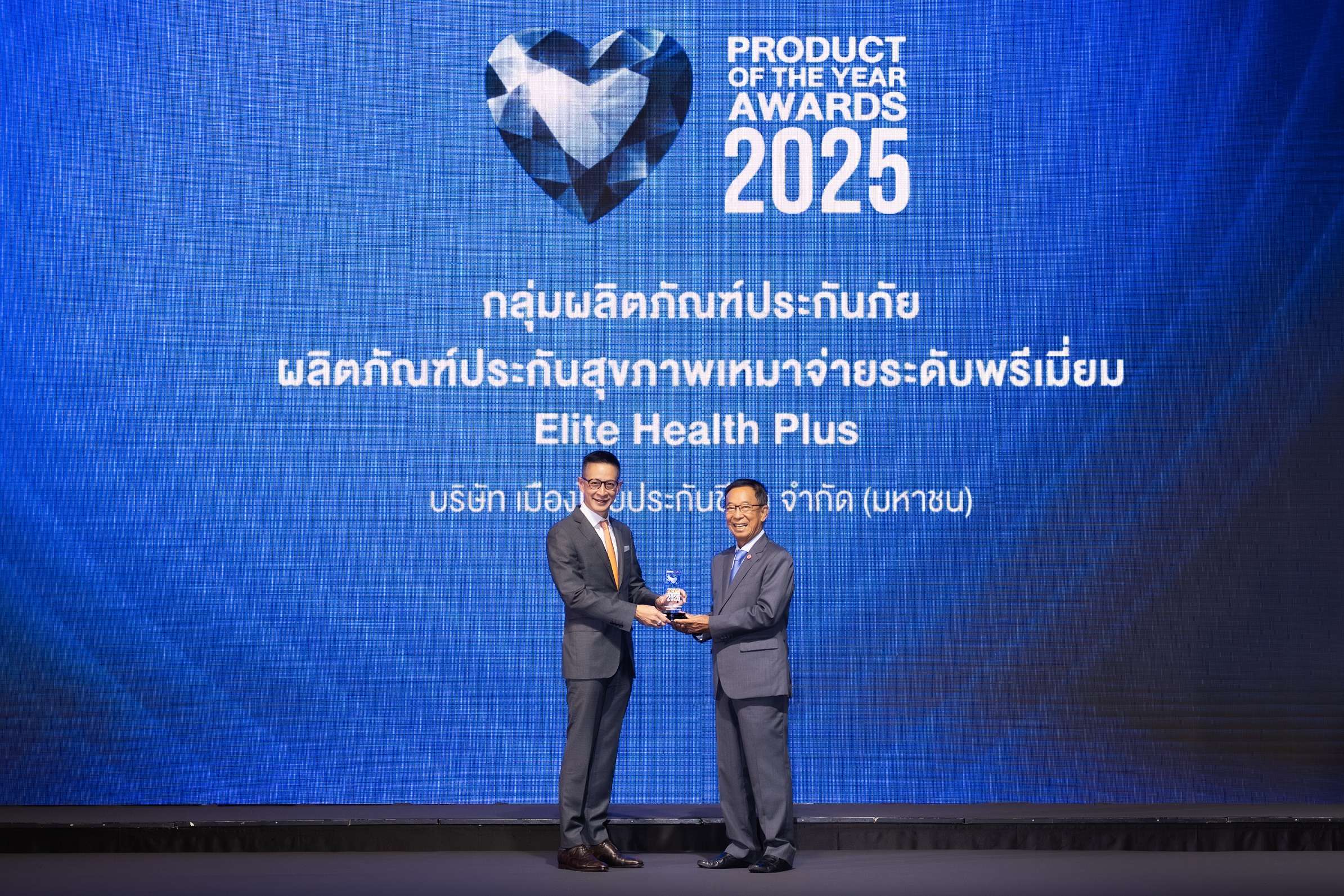 นายสาระ ล่ำซำ ประธานเจ้าหน้าที่บริหาร บริษัท เมืองไทยประกันชีวิต จำกัด (มหาชน) ขึ้นรับรางวัลสุดยอดผลิตภัณฑ์แห่งปี ประเภทผลิตภัณฑ์ประกันสุขภาพเหมาจ่ายระดับพรีเมี่ยม จากผลิตภัณฑ์ความคุ้มครองสุขภาพ “อีลิท เฮลท์ พลัส”ต่อเนื่องเป็นปีที่ 6 จากงาน “BUSINESS+ PRODUCT OF THE YEAR AWARDS 2025” จัดโดย นิตยสาร Business+ ในเครือ บริษัท เออาร์ไอพี จำกัด (มหาชน) ร่วมกับ วิทยาลัยการจัดการ มหาวิทยาลัยมหิดล (CMMU) โดยมี ฯพณฯ นุรักษ์ มาประณีต องคมนตรี ประธานในพิธีเป็นผู้มอบรางวัล งานจัดขึ้น ณ ห้องบอลรูม โรงแรมสวิสโฮเต็ล กรุงเทพฯ รัชดา