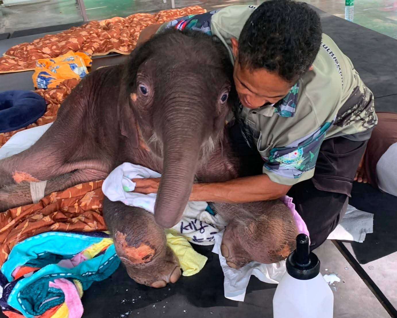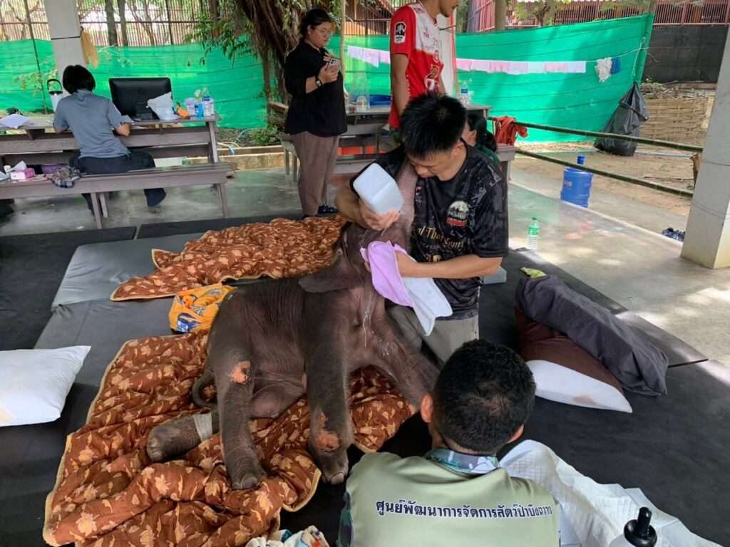 “ข้าวต้ม” ลูกช้างป่าพลัดหลงเริ่มมีกำลังยืน-ก้าวเดินได้ ทีมสัตวแพทย์เผยอาการฟื้นตัวต่อเนื่อง แต่ยังคงต้องรักษาและเฝ้าระวังภาวะแทรกซ้อนอย่างใกล้ชิด