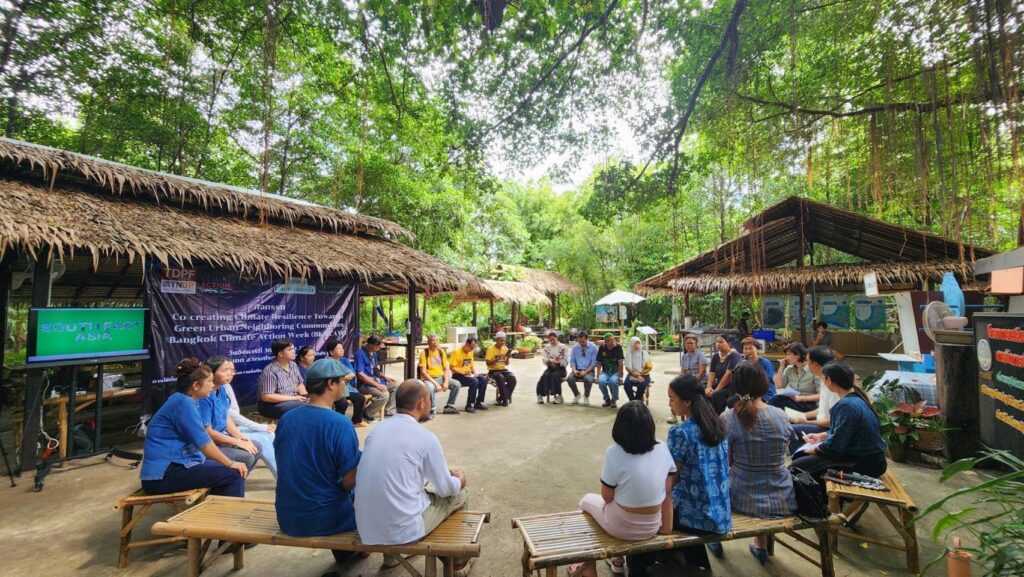 การสนทนากลางวงสะท้อนภาพจริงของแต่ละชุมชน — ทุ่งครุเผชิญปัญหาพื้นที่สีเขียวหดหาย เกษตรกรถูกกระทบจากการใช้ทรัพยากรไม่ระมัดระวัง ขณะที่บางกระเจ้าซึ่งได้ชื่อว่า “ปอดของกรุงเทพฯ” กำลังรับภาระจากขยะ น้ำเสีย และมลพิษที่เมืองส่งกลับมา ทั้งยังฝากคำถามว่า “คนกรุงเทพฯ จะร่วมรับผิดชอบบางกระเจ้าอย่างไร”