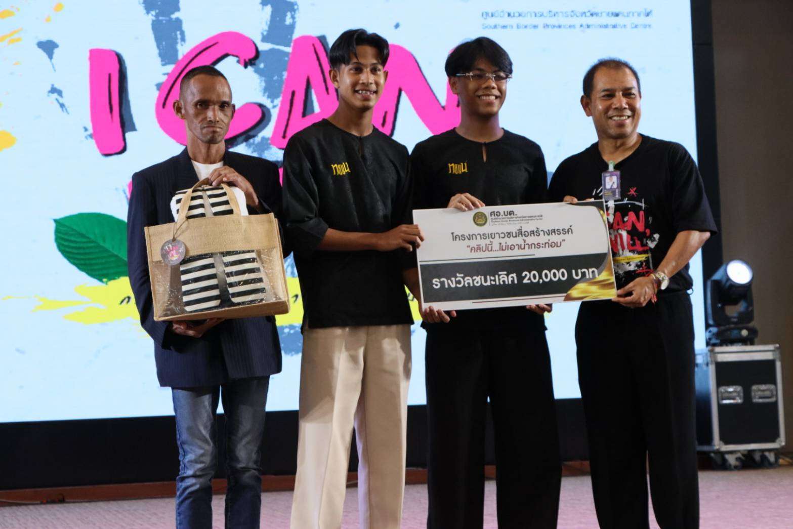 โดยเยาวชนกลุ่มที่ชนะ “คลิปนี้…ไม่เอาน้ำท่อม” ได้แก่ รางวัลชนะเลิศ เงินรางวัล 20,000 บาท ได้แก่ : ilhqmm9_ (Tiktok รองชนะเลิศอันดับ 1 เงินรางวัล 10,000 บาท ได้แก่ : Nyori (Facebook) รองชนะเลิศอันดับ 2 เงินรางวัล 5,000 บาท ได้แก่ : โรงเรียนแสงทิพย์วิทยา (Facebook) รางวัลชมเชย 1 เงินรางวัล 2,500 บาท ได้แก่ : อวท.วก.รามัน (Facebook) รางวัลชมเชย 2 เงินรางวัล 2,500 บาท ได้แก่ : WA IL (Facebook) และรางวัล Popular Vote เงินรางวัล 5,000 บาท ได้แก่ : tuan_fiz18 (Tiktok)