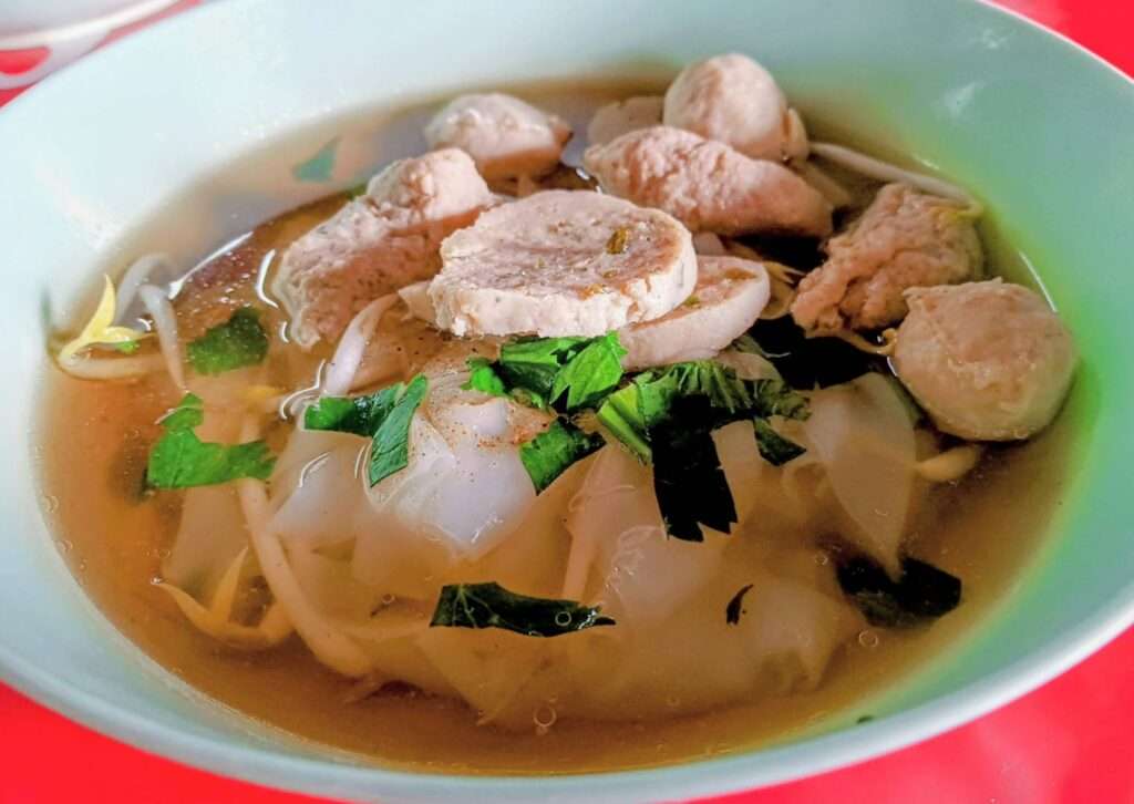 “เส้นหมี่น้ำ เส้นใหญ่น้ำ และหมูสะเต๊ะ”