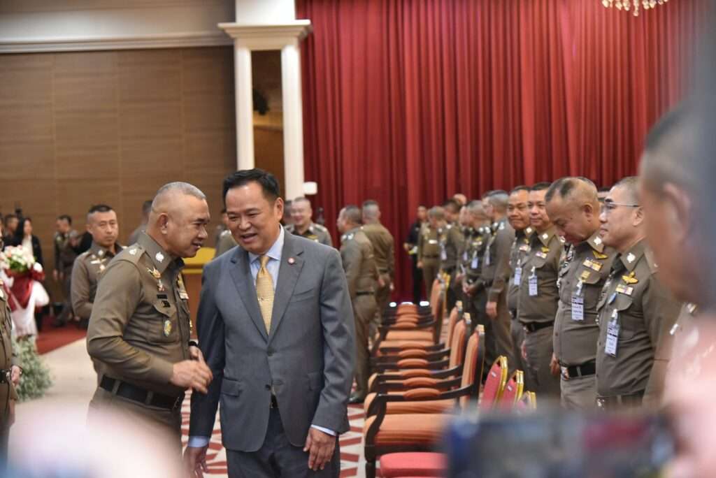 นายอนุทินกล่าวแสดงความยินดีและยอมรับว่ารู้สึกแปลกและเกร็งที่ได้มาในพิธีการลักษณะนี้ เนื่องจากความสัมพันธ์ส่วนตัวที่มีต่อเจ้าหน้าที่ตำรวจนั้นเป็นแบบ “พี่น้อง” มากกว่าระดับผู้บังคับบัญชา โดยระบุว่าตำรวจกว่า 80% ในห้องประชุมมีความผูกพันกันมานานนับ “ทศวรรษ” จากการที่ตนเองได้เติบโตในครอบครัวที่ใกล้ชิดกับข้าราชการตำรวจมาตั้งแต่เด็ก จนกระทั่งได้เป็นลูกเขยตำรวจ