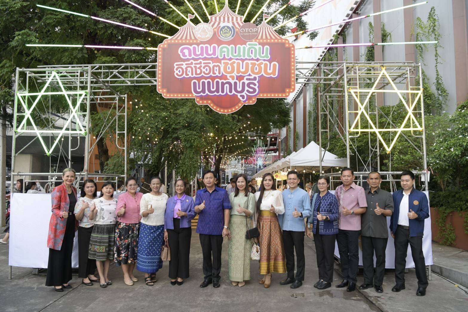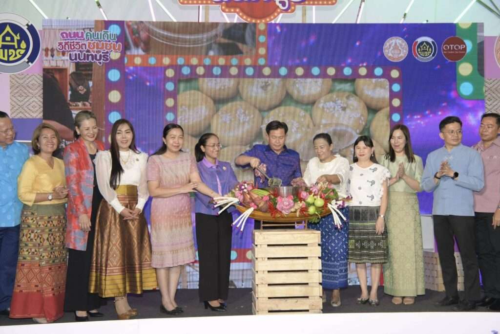 วันที่ 1 ตุลาคม 2568 เวลา 18.00 น. ณ บริเวณห้างสรรพสินค้าเช็นทรัลแจ้งวัฒนะ อำเภอปากเกร็ด จังหวัดนนทบุรี นายเกียรติศักดิ์ ตรงศิริ ผู้ว่าราชการจังหวัดนทบุรี เป็นประธานในพิธีเปิดโครงการถนนคนเดินเที่ยวเพลินช้อปผลิตภัณฑ์ชุมชน ชิมผลไม้เมืองนนท์ ภายใต้ชื่องาน “ถนนคนเดิน วิถีชีวิตชุมชนนนทบุรี” นางวชิรพร แจ้งเอี่ยม ผู้อำนวยการกลุ่มงานส่งเสริมการพัฒนาขุมชน กล่าวรายงาน มีวัตถุประสงค์ เพื่อเพิ่มช่องทางการตลาด และเพิ่มศักยภาพในการแข่งขันทางการตลาดให้แก่ผู้ผลิต ผู้ประกอบการ OTOP ผู้ประกอบการชุมชน และกลุ่มอาชีพ ของจังหวัดนนทบุรี โดยกำหนดดำเนินโครงการฯ จำนวน 3 ครั้ง ดังนี้