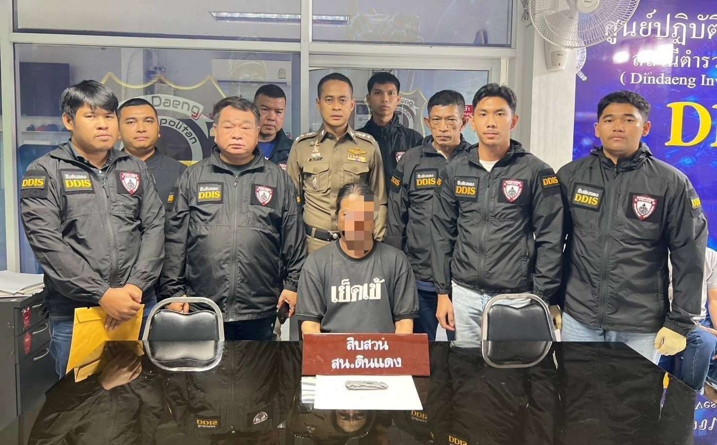 ภายใต้การอำนวยการของ พล.ต.อ.กิตติ์รัฐ พันธุ์เพ็ชร์ ผบ.ตร., พล.ต.อ.ธนา ชูวงศ์ รอง ผบ.ตร., พล.ต.ท.สยาม บุญสม ผบช.น., พล.ต.ต.ชรินทร์ โกพัฒน์ตา รอง ผบช.น., พล.ต.ต.พัลลภ แอร่มหล้า รอง ผบช.น., พล.ต.ต.อัฏธพร วงศ์ศิริปรีดา รอง ผบช.น., พล.ต.ต.วรศักดิ์ พิสิฐบรรณกร ผบก.น.1, พ.ต.อ.เอกภพ ตันประยูร รอง ผบก.น.1, พ.ต.อ.ศักยะ แสงวรรณ รอง ผบก.น.1 สั่งการให้ พ.ต.อ.ภษิต กะเตื้องงาน ผกก.สน.ดินแดง, พ.ต.ท.สรัล สุรเดชานนท์ รอง ผกก.สส.สน.ดินแดง, พ.ต.ท.ปิติพล พรหมแก้ว รอง ผกก.(สอบสวน) สน.ดินแดง, พ.ต.ท.นพโรจน์ พัชราจิระศักดิ์ สว.สส.สน.ดินแดง พร้อมชุดสืบสวน สน.ดินแดง ร่วมกันสืบสวนติดตามจับกุมตัวนายเอกสิทธิ์ หรือปุ๋ย อายุ 50 ปี ผู้ต้องหา ตามหมายจับศาลอาญาที่ 5800/2568 ลงวันที่ 2 ต.ค.2568 ข้อหา “ฆ่าผู้อื่น”