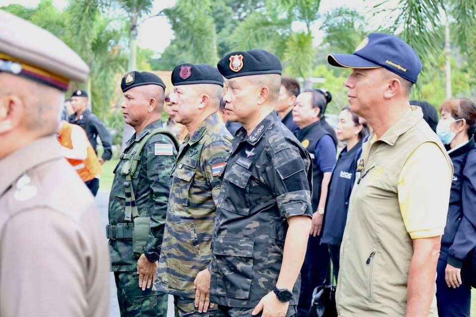 ในการนี้ พล.ต.อ.สำราญ นวลมา รอง ผบ.ตร. พร้อมด้วย พล.ต.ท.รุ่งโรจน์ ฐากูรปุณยสิริ ผบช.ตชด. และ พล.ต.ต.วันชนะ ธรรมเสนา รอง ผบช.ตชด. ร่วมคณะและรับฟังบรรยายสรุปสถานการณ์