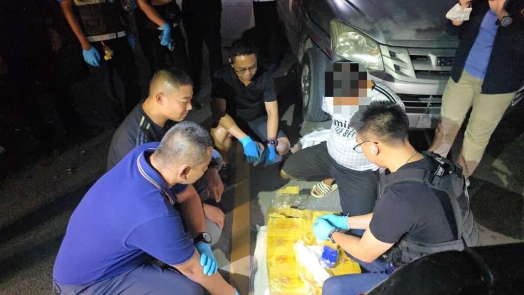 ต่อมาวันที่ 2 ตุลาคม 2568 เวลาประมาณ 02.00 น. เมื่อรถยนต์กระบะ ยี่ห้ออีซูซุ ดีแม็ก สีดำฯ คันเป้าหมาย ขับเข้ามาในถนนอุ่นใจ ทางหลวงหมายเลข 3487(ทางเข้าวัดนิเวศน์ปวราราม) ต.มดแดง อ.ศรีประจันต์ จ.สุพรรณบุรี เจ้าหน้าที่ตำรวจชุดจับกุมเชื่อว่ากลุ่มผู้ต้องหากำลังลำเลียงยาเสพติดมาเก็บไว้ในเพิงพักดังกล่าว เจ้าหน้าที่ตำรวจจึงได้แสดงตัวเข้าทำการตรวจค้น พบผู้ต้องหา ขับรถยนต์กระบะ ยี่ห้ออีซูซุ สีดำฯ จากการตรวจค้น พบยาเสพติด(ยาบ้า) จำนวน 15 กระสอบ กระสอบละ 200,000 เม็ด รวมเป็นจำนวน 3,000,000 เม็ด