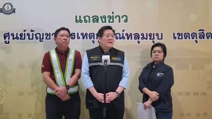 เมื่อวันที่ 5 ต.ค. 68 นายวัชรพล คงสวัสดิ์ รองผู้อำนวยการโครงการรถไฟฟ้าสายสีม่วง พร้อมด้วย นายแพทย์อนุแสง จิตสมเกษม ผู้อํานวยการโรงพยาบาลวชิรพยาบาล และ นางวรัญญา ลีลาบูรณพงศ์ ผอ.เขตดุสิต ร่วมกันแถลงความคืบหน้าสถานการณ์เหตุถนนสามเสนทรุดตัวจนเป็นหลุมลึกขนาดใหญ่หน้าโรงพยาบาลวชิรพยาบาล เขตดุสิต กรุงเทพฯ เข้าสู่วันที่ 11