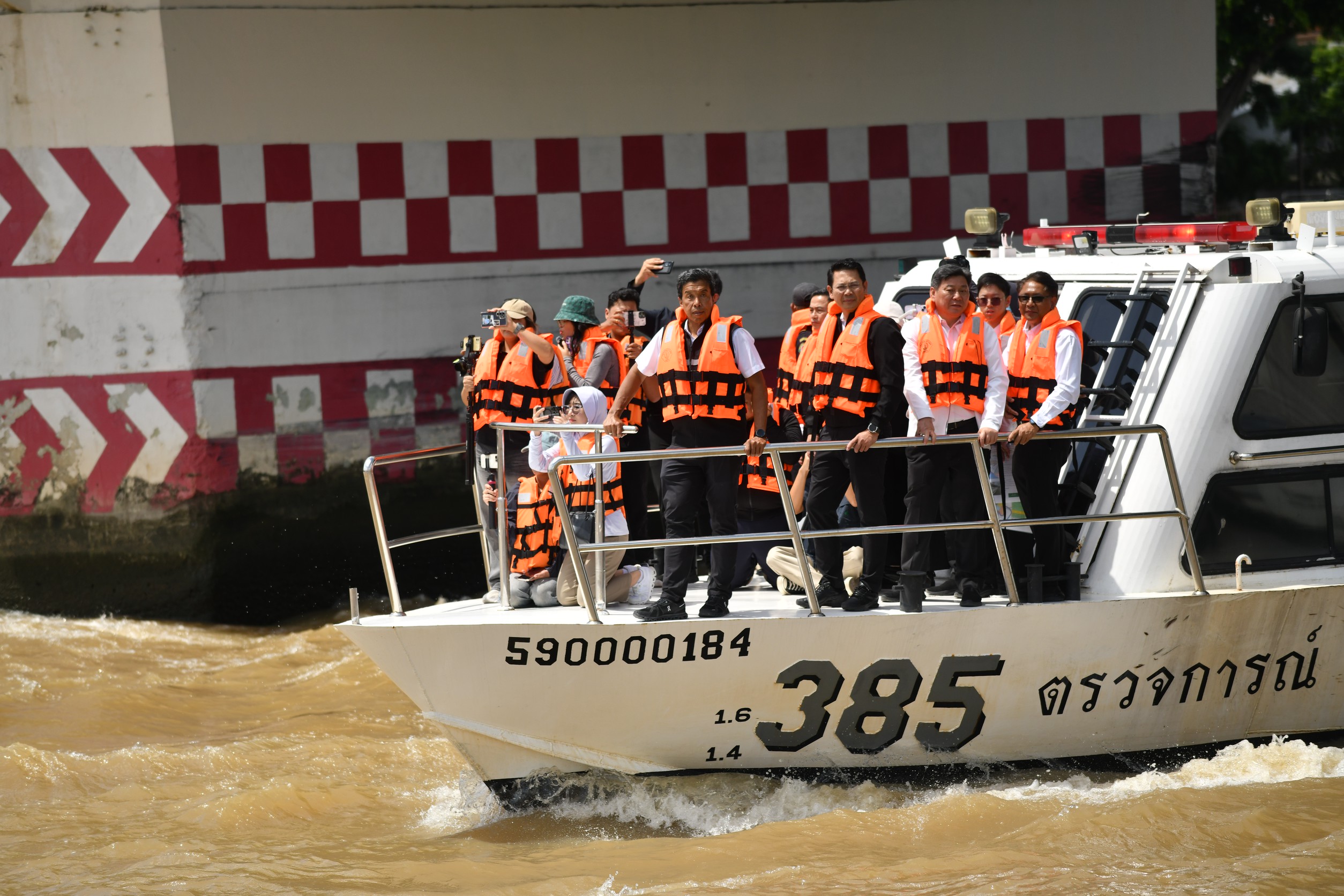 ผู้ว่าฯ ชัชชาติ กล่าวว่า จากสถานการณ์พื้นที่ทางภาคเหนือ ซึ่งมีฝนตกหนักหลายพื้นที่ทำให้เกิดน้ำท่วมในบางจังหวัด ประชาชนในกรุงเทพมหานครอาจจะกังวลเรื่องสถานการณ์น้ำ และส่งผลกระทบต่อระดับน้ำในแม่น้ำเจ้าพระยาหรือไม่ วันนี้เลยอยากพาสื่อมวลชนลงเรือเพื่อดูแนวป้องกันน้ำท่วม และแผนรับมือของกรุงเทพมหานคร แม้ว่าสถานการณ์ในตอนนี้แม่น้ำเจ้าพระยาเพิ่มสูงขึ้นอย่างรวดเร็ว กรุงเทพมหานครได้ติดตามสถานการณ์และประสานข้อมูลร่วมกับหน่วยงานที่เกี่ยวข้อง ได้แก่ กรมชลประทาน ศูนย์อำนวยการน้ำแห่งชาติ สำนักงานทรัพยากรน้ำแห่งชาติ อย่างต่อเนื่อง เพื่อเตรียมความพร้อมรับมือกับสถานการณ์น้ำ ที่อาจส่งผลให้เกิดน้ำท่วมในบางพื้นที่ของกรุงเทพมหานครได้