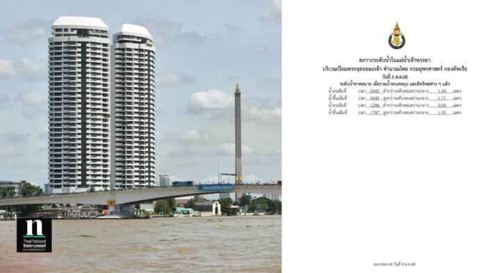 สภาวะระดับน้ำในแม่น้ำเจ้าพระยา บริเวณป้อมพระจุลจอมเกล้า คำนวณโดย กรมอุทกศาสตร์ กองทัพเรือ