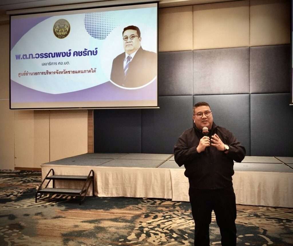 ที่ Health Land Resort & Spa จ.ชลบุรี, วันที่ 8 ตุลาคม – พันตำรวจโท วรรณพงษ์ คชรักษ์ เลขาธิการศูนย์อำนวยการบริหารจังหวัดชายแดนภาคใต้ (ศอ.บต.) นำทีมเครือข่ายนักธุรกิจชายแดนใต้ (SBN) ในพื้นที่ จับคู่ธุรกิจ (Business Matching) ระหว่างผู้ประกอบการกลุ่ม SBN และกลุ่ม The Masters Academy หรือกลุ่มนักธุรกิจภาคตะวันออก โดยมีวัตถุประสงค์เพื่อสร้างเครือข่ายและความร่วมมือทางธุรกิจระหว่างผู้ประกอบการในพื้นที่จังหวัดชายแดนภาคใต้และภูมิภาคอื่น ส่งเสริมโอกาสในการจับคู่ธุรกิจ (Business Matching) และการขยายช่องทางการตลาดร่วมกัน ซึ่งจะนําไปสู่ความร่วมมือเชิงยุทธศาสตร์ในอนาคต ตลอดจนเป็นการประสานความร่วมมือระหว่างหน่วยงานภาครัฐและภาคเอกชน ในการพัฒนาเศรษฐกิจในพื้นที่จังหวัดชายแดนภาคใต้ ซึ่งจัดขึ้นระหว่างวันที่ 8 – 9 ตุลาคม พ.ศ. 2568