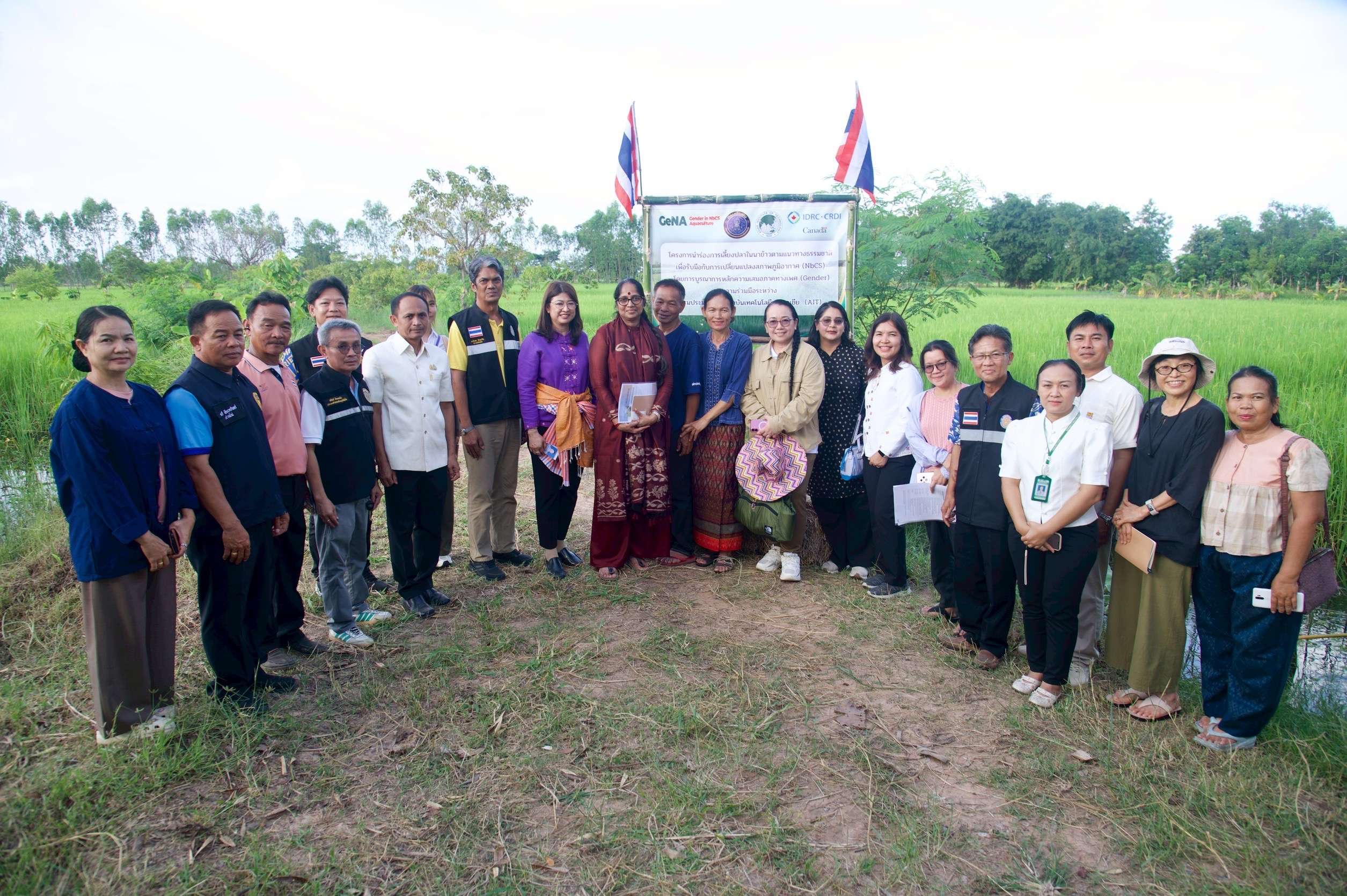 กรมประมง ร่วมกับ สถาบันเทคโนโลยีแห่งเอเชีย (AIT) นำคณะทำงานจากการประชุมสัมมนาวิชาการระดับนานาชาติ ด้านความเสมอภาคทางเพศในภาคการประมงและการเพาะเลี้ยงสัตว์น้ำ หรือ GAF9 จำนวน 11 ราย ลงพื้นที่ จ.มหาสารคาม เพื่อติดตามความก้าวหน้า GeNA Project ซึ่งเป็นโครงการนำร่องของประเทศไทยในการส่งเสริมให้เกษตรกรเลี้ยงปลาในนาข้าว โดยใช้แนวทางธรรมชาติ มุ่งพัฒนาภาคการประมงและการเพาะเลี้ยงสัตว์น้ำสู่ความยั่งยืน พร้อมหนุนบทบาทสตรีให้มีส่วนร่วมในกระบวนการพัฒนาอาชีพ สร้างรายได้ เพื่อยกระดับคุณภาพชีวิตและสร้างความเข้มแข็งให้ชุมชนท้องถิ่นอย่างยั่งยืน
