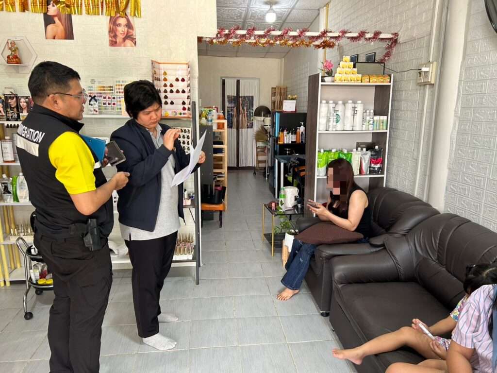 ในการปฏิบัติการวันที่ 9 ตุลาคม 2568 เวลา 10.30 น. เจ้าหน้าที่พบคนต่างด้าวทำงานในร้านแรกจำนวน 2 คน ตรวจสอบเอกสารพบว่า หนึ่งคนมีใบอนุญาตทำงานถูกต้อง ส่วนอีกคนไม่มีใบอนุญาตทำงาน จึงจับกุมทั้งสอง พร้อมเจ้าของร้านไทยในข้อหา “รับคนต่างด้าวทำงานโดยไม่มีใบอนุญาตหรือทำงานนอกเหนือสิทธิ”