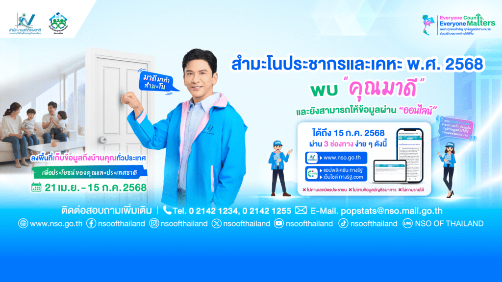 กรุงเทพฯ, วันที่ 12 ต.ค. – สำนักงานสถิติแห่งชาติออกประกาศแจ้งเตือนประชาชนว่า ตามที่ได้มีกลุ่มคนมีเอกสารจากสำนักงานสถิติแห่งชาติ อ้างว่าจำเป็นต้องตรวจสอบบัตรประจำตัวประชาชนสำหรับการสำรวจสำมะโนประชากรและเคหะ ต้องการถ่ายรูป และสแกนลายนิ้วมือตามแผนการที่ต้องการหลอกลวง