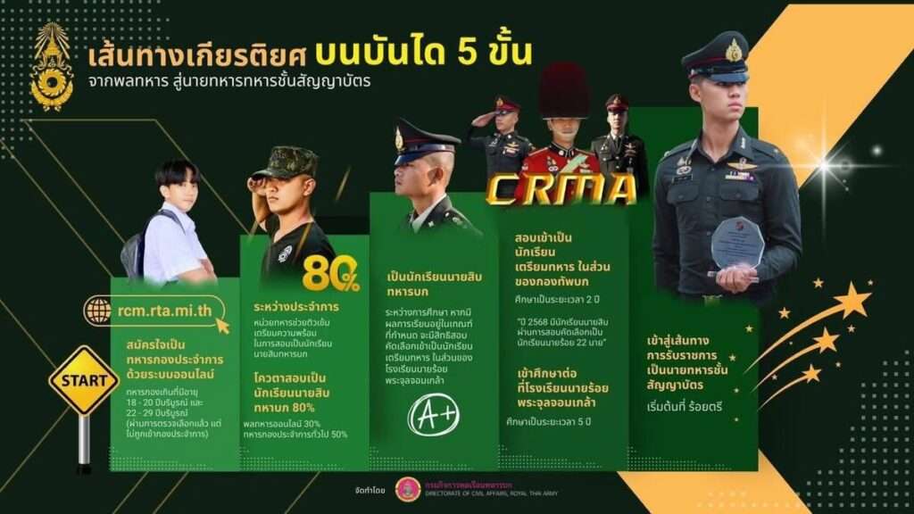 สมัครก่อน มีสิทธิก่อน! ผู้ที่สนใจสามารถศึกษารายละเอียดเพิ่มเติมและสมัครได้ทางเว็บไซต์อย่างเป็นทางการของกองทัพบก
