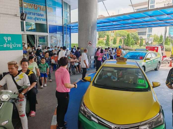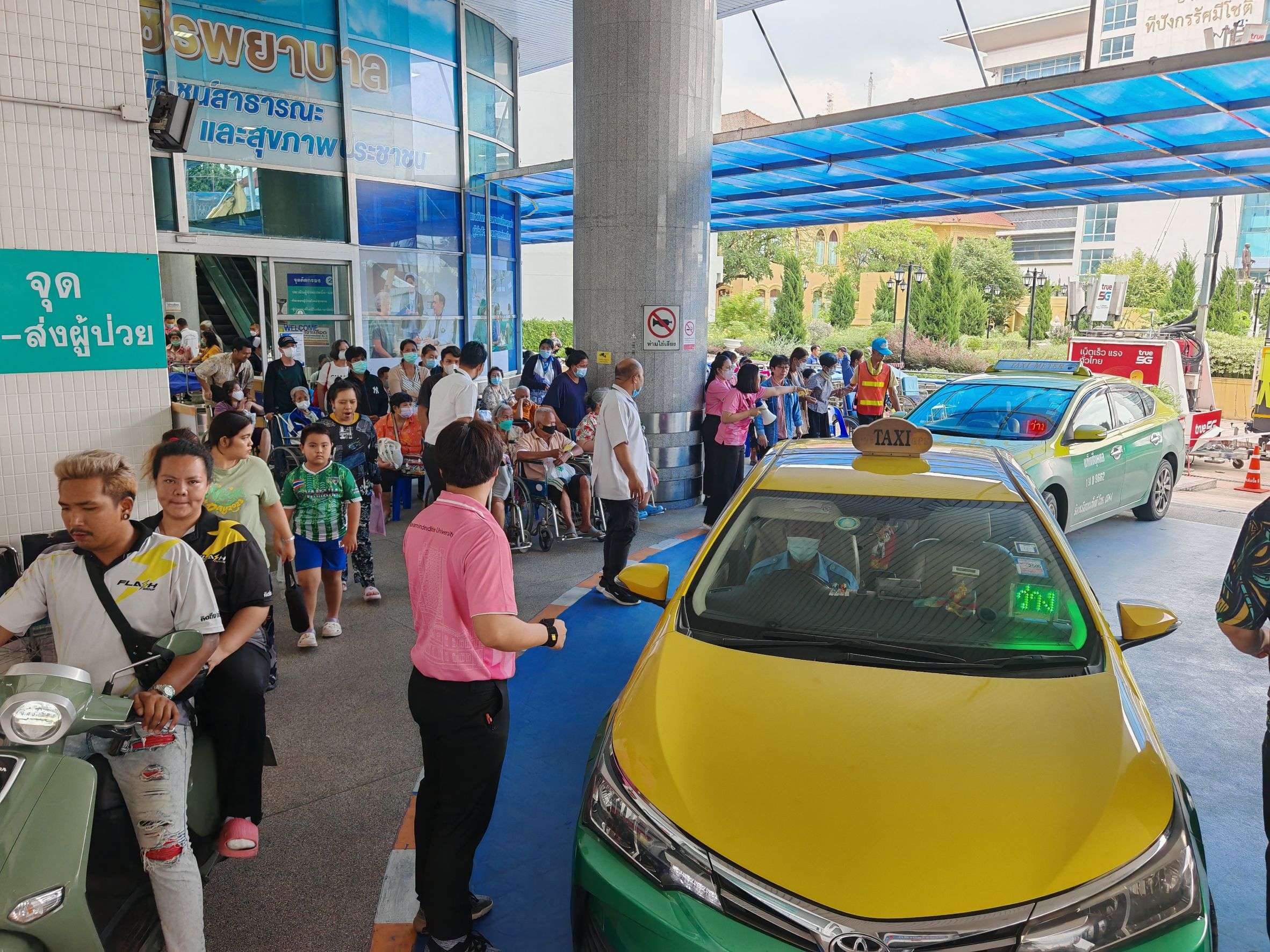 เนื่องจากทาง รพ. ได้ประกาศให้ผู้มาใช้บริการงดนำรถมาจอดระหว่างการซ่อมแซมหลุมยุบที่บริเวณหน้า รพ. ทำให้ต้องการรถแท็กซี่มารับผู้ป่วยจำนวนมาก