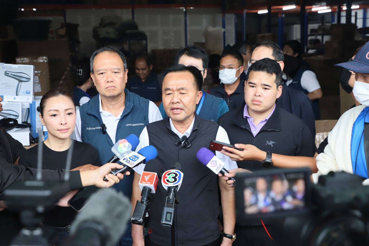 ปทุมธานี, 14 ตุลาคม – จากกรณีไดร์เป่าผมไม่ได้มาตรฐานช็อตเด็ก 10 ขวบ เสียชีวิตที่จังหวัดบุรีรัมย์ ซึ่งเจ้าหน้าที่สืบทราบว่าไดร์มรณะดังกล่าวถูกส่งไปจากโกดังแห่งหนึ่งในปทุมธานี จ่าเอก ยศสิงห์ เหลี่ยมเลิศ รมช.อุตสาหกรรม พร้อมด้วย นายเอกนิติ รมยานนท์ เลขาธิการสำนักงานมาตรฐานผลิตภัณฑ์อุตสาหกรรม (สมอ.) นายนรุณ สุขสมาน รองเลขา สมอ. และเจ้าหน้าที่ จึงเดินทางไปตรวจคลังสินค้าออนไลน์ขนาดใหญ่ ใน อ.คลองหลวง จ.ปทุมธานี ซึ่งมีข้อมูลว่าเป็นจุดพบสินค้าเครื่องใช้ไฟฟ้าไม่ได้มาตรฐาน กว่าแสนชิ้น มูลค่า 10.9 ล้านบาท