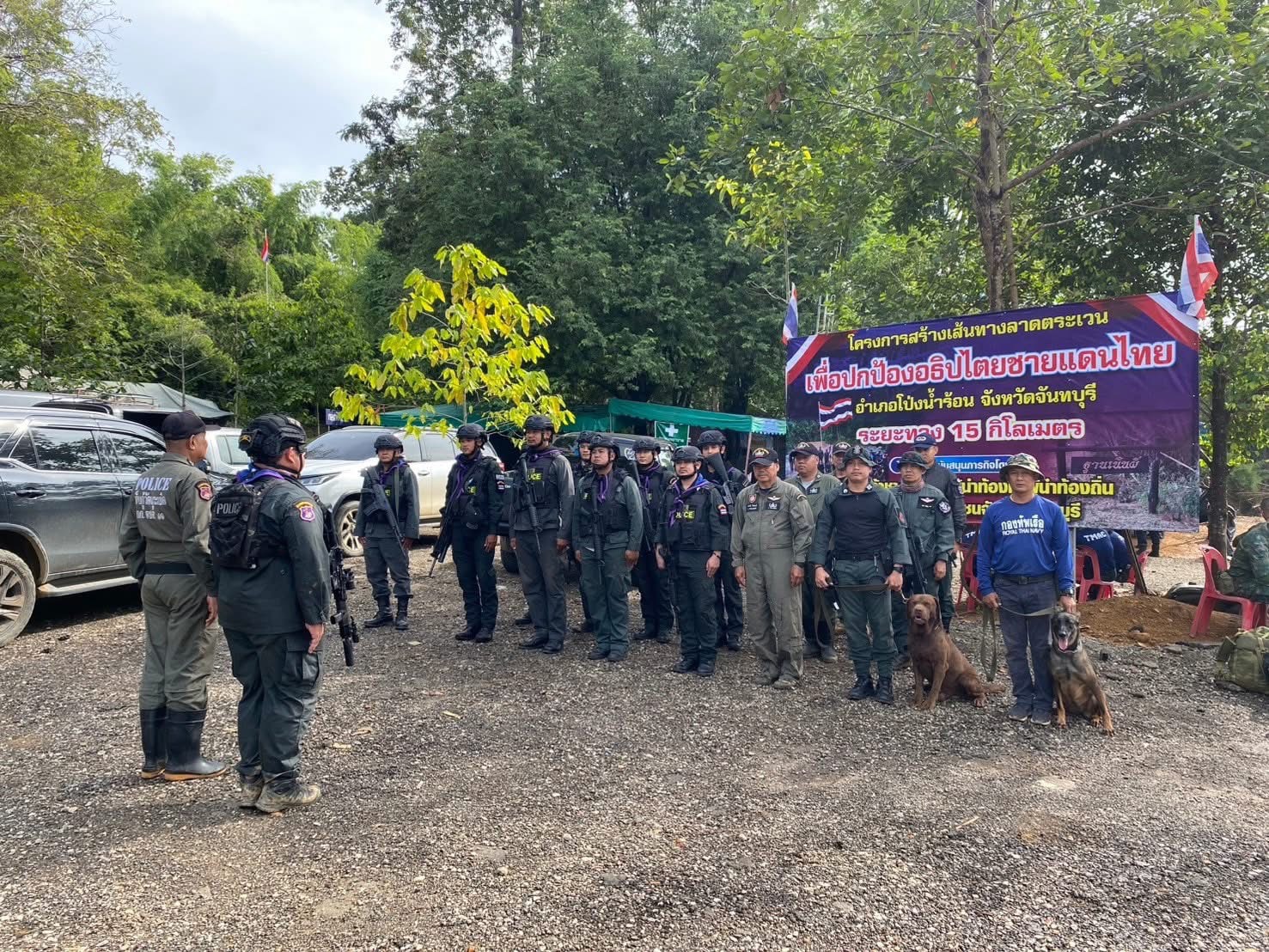 เมื่อวันที่ 13-14 ตุลาคม 2568 ร.ต.อ.กฤตภาส เกตุวิทยา รอง ผบ.ร้อย ตชด.114 นำกำลังพลปฏิบัติภารกิจรักษาความปลอดภัยเส้นทางก่อสร้างถนนเลียบชายแดนและเส้นทางส่งกำลังบำรุง ณ ฐานเนินผี ต.คลองใหญ่ อ.โป่งน้ำร้อน จ.จันทบุรี