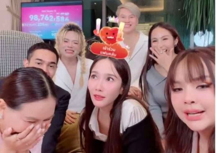 โดยระหว่างการไลฟ์ปรากฏว่าเพียงเปิดไลฟ์ได้ไม่ถึง 10 นาที ยอดผู้ชมพุ่งทะลุ 1.2 ล้านคน แบบเรียลไทม์ และยอดสั่งซื้อสินค้าทะยานแตะ 108,000 ออเดอร์ รวมมูลค่ากว่า 77ล้านบาท กลายเป็นสถิติยอดขายสูงสุดอีกครั้งของวงการไลฟ์ไทยในปีนี้