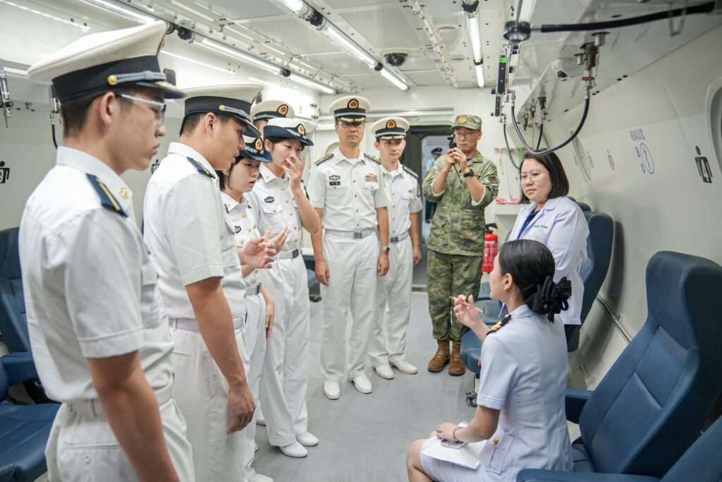 เมื่อวันที่ 17 ตุลาคม 2568 พลเรือตรี กิติศักดิ์ สายนุช ผอ.รพ.สมเด็จพระนางเจ้าสิริกิติ์ พร. พร้อมด้วยคณะผู้บริหาร ให้การต้อนรับหมู่เรือฝึกนักเรียนนายเรือจีน นำคณะโดย น.อ.พิเศษ Zhou Lin หน.คณะหน่วยภารกิจทางการแพทย์ และน.อ. LI HaiJun รอง ผบ.มฝ.นรร.จีน พร้อมด้วยนักศึกษาแพทย์ ชั้นปีที่ 3 จากมหาวิทยาลัยการแพทย์ทหารเรือจีน จำนวน 20 นาย เข้าเยี่ยมหน่วยและรับฟังการบรรยายสรุป ณ ห้องประชุม 20 ปี รพ.ฯ