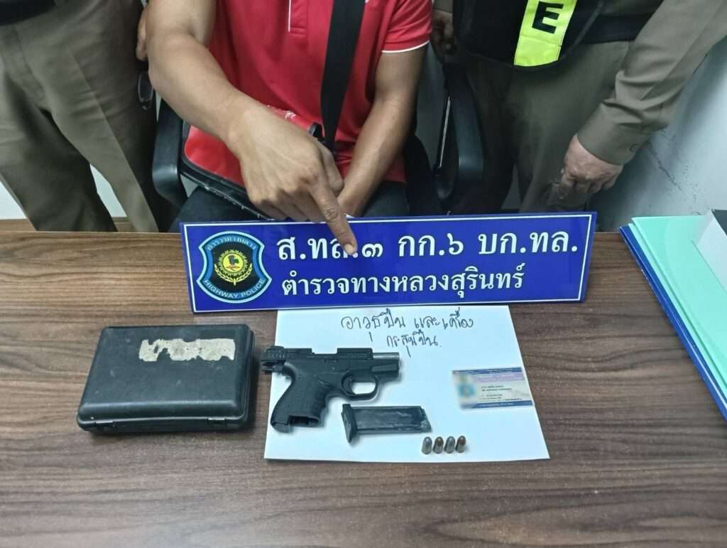 ตำรวจ​CIB​ รวบหนุ่มกระบะซิ่ง พกปืนเถื่อนกลางเมืองสุรินทร์