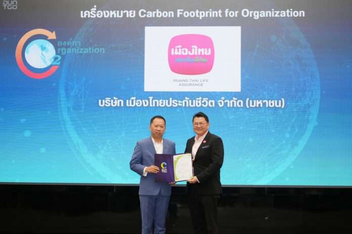 ทั้งนี้ ในพิธีมอบประกาศนียบัตรเครื่องหมายรับรองฉลากคาร์บอน จัดโดยองค์การบริหารจัดการก๊าซเรือนกระจก (องค์การมหาชน) หรือ TGO มีนายปราโมทย์ ศักดิ์กำจร รองกรรมการผู้จัดการอาวุโส บริษัท เมืองไทยประกันชีวิต จำกัด (มหาชน)เป็นตัวแทนบริษัทฯ ขึ้นรับมอบประกาศนียบัตรเครื่องหมายรับรองฉลากคาร์บอน จากนายณกรณ์ ตรรกวิรพัท ผู้อำนวยการองค์การบริหารจัดการก๊าซเรือนกระจกประธานในพิธี ซึ่งงานดังกล่าวจัดขึ้นเพื่อเชิดชูเกียรติและแสดงความขอบคุณต่อองค์กรที่ขอการรับรองเครื่องหมายฉลากคาร์บอน ในฐานะเป็นผู้ที่มีบทบาทสำคัญในการขับเคลื่อนการลดก๊าซเรือนกระจกเพื่อมุ่งสู่ Net Zero ณ ห้อง Conference Hall สถาบันเพื่อการยุติธรรมแห่งประเทศไทย (องค์การมหาชน) หรือ TIJ ถนนแจ้งวัฒนะ กรุงเทพฯ