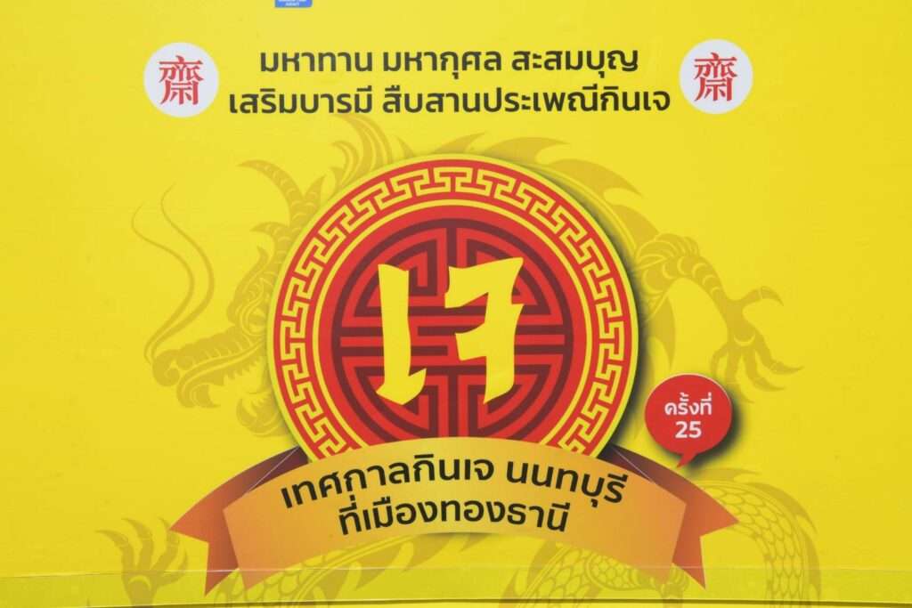 สำหรับงาน “เทศกาลกินเจ นนทบุรีที่เมืองทองธานี” ครั้งที่ 25 ประกอบไปด้วย โซนอาหาร ที่อร่อย สะอาดปรุงถูกต้องตามหลักเจ รวมทั้งมีการจัดกิจกรรม “มหามงคล” ให้กับผู้มาร่วมงาน เช่น ขบวนแห่มังกรทอง โชว์สิงโตกระโดดเสาดอกเหมย ตีกลองฉลองชัยเปิดงาน จุดประทัดเบิกฤกษ์ 1,999 ดอก สักการะเทพเจ้า เก้าอ๊วง ฮุดโจ้ว ถวายบัวประทีป แด่องค์พระโพธิสัตว์กวนอิม การแสดงระบำกวนอิมพันมือ การประกอบเมนูมงคล “ราดหน้า 8 เซียน” เขียนป้าย ขอพร โคมไฟมงคล และร่วมบริจาคทาน สะสมบุญ เสริมสร้างบารมี