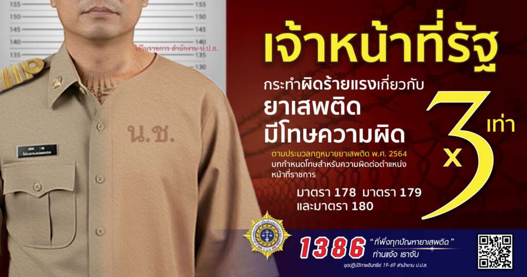 “กรณีนี้เป็นเครื่องยืนยันที่ชัดเจนว่า เราจะไม่ละเว้นหรือปล่อยให้เจ้าหน้าที่รัฐคนใดเข้ามามีส่วนเกี่ยวข้องกับยาเสพติดโดยเด็ดขาด เพราะนอกจากจะผิดกฎหมายแล้ว ยังทำลายความเชื่อมั่นของประชาชนที่มีต่อหน่วยงานภาครัฐ สายด่วน 1386 คือ การที่ประชาชนสามารถแจ้งเบาะแสได้ทุกเรื่อง และเราพร้อมที่จะตรวจสอบอย่างตรงไปตรงมา ไม่ว่าผู้ถูกกล่าวหาจะเป็นใครก็ตาม เพื่อเป็นที่พึ่งทุกปัญหายาเสพติด สามารถลดความเดือดร้อนของพี่น้องประชาชนในพื้นที่อย่างเร่งด่วน และทันท่วงที” เลขา ป.ป.ส.กล่าว