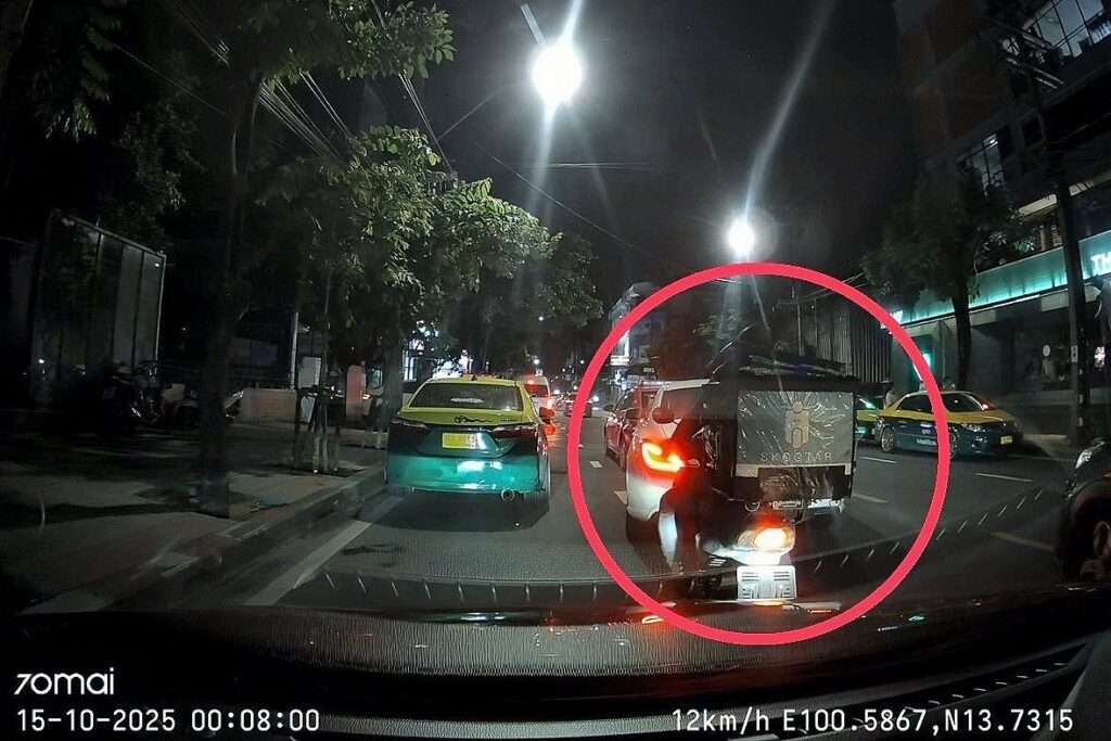 -เวลา 01.47 น. น้องได้ส่งคลิปกล้องหน้ารถมาให้ หลักฐานจากกล้อง ชัดเจนว่า ชายหัวโล้นชุดดำ ที่ขี่มอเตอร์ไซค์ ไม่ติดแผ่นป้ายทะเบียน และมีลังส่งของแอปหนึ่ง ไม่ได้เพิ่งบังเอิญเจอปุ้ย แต่สะกดรอยตามปุ้ยมา จากแถวที่ทำงาน (ตามภาพคือเส้นเอกมัย)