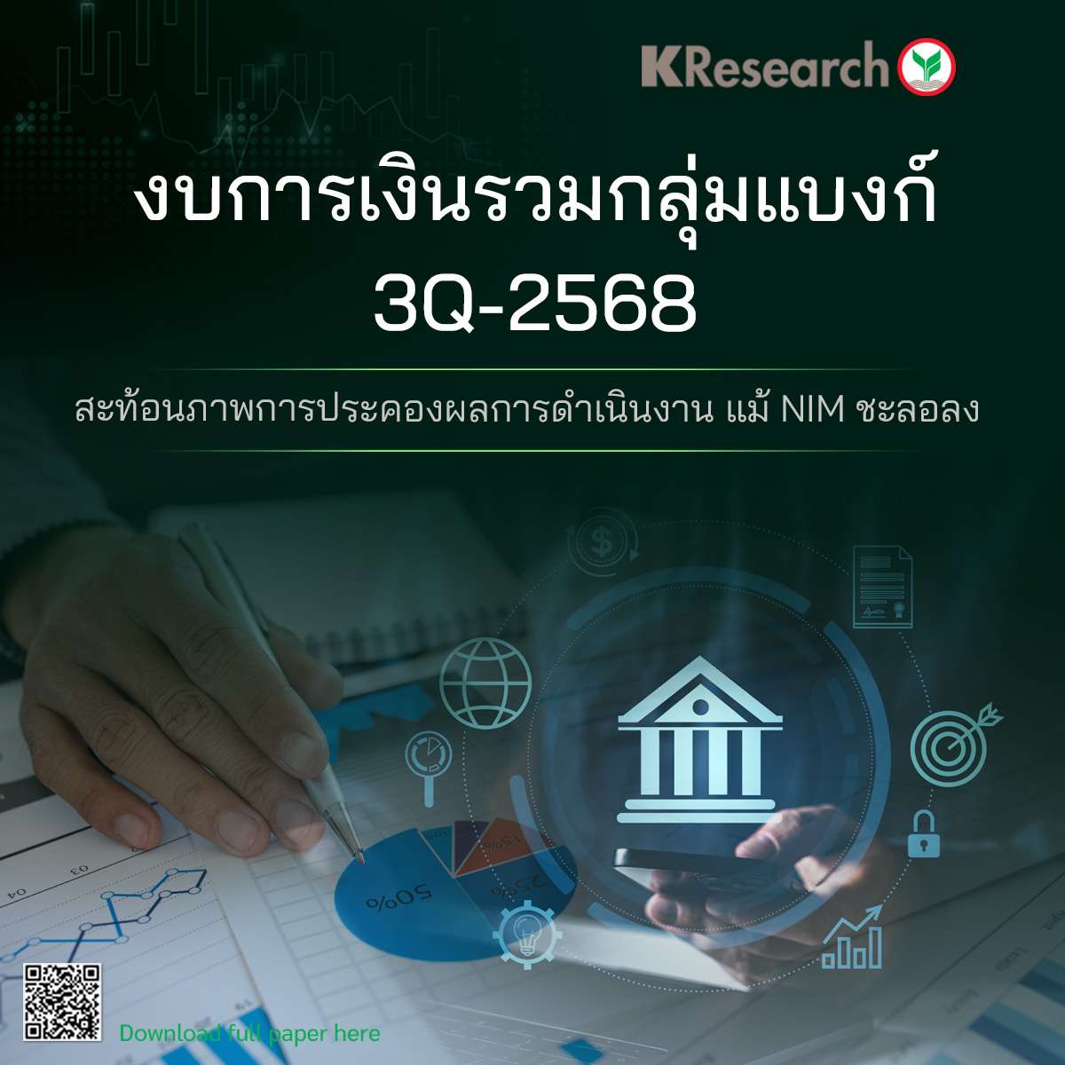 ผลตอบแทนจากการปล่อยสินเชื่อลดลงเร็วกว่าต้นทุนทางการเงิน และส่วนต่างรายได้ดอกเบี้ยสุทธิ (NIM)  กลุ่มแบงก์ปรับตัวลงมาแล้ว 4 ไตรมาสติดต่อกัน ขณะที่แม้ว่าสัดส่วนหนี้เสีย (NPL) ขยับขึ้นเล็กน้อยในไตรมาส 3/2568 แต่ปัญหาคุณภาพสินเชื่อยังเป็นประเด็นติดตามต่อเนื่อง