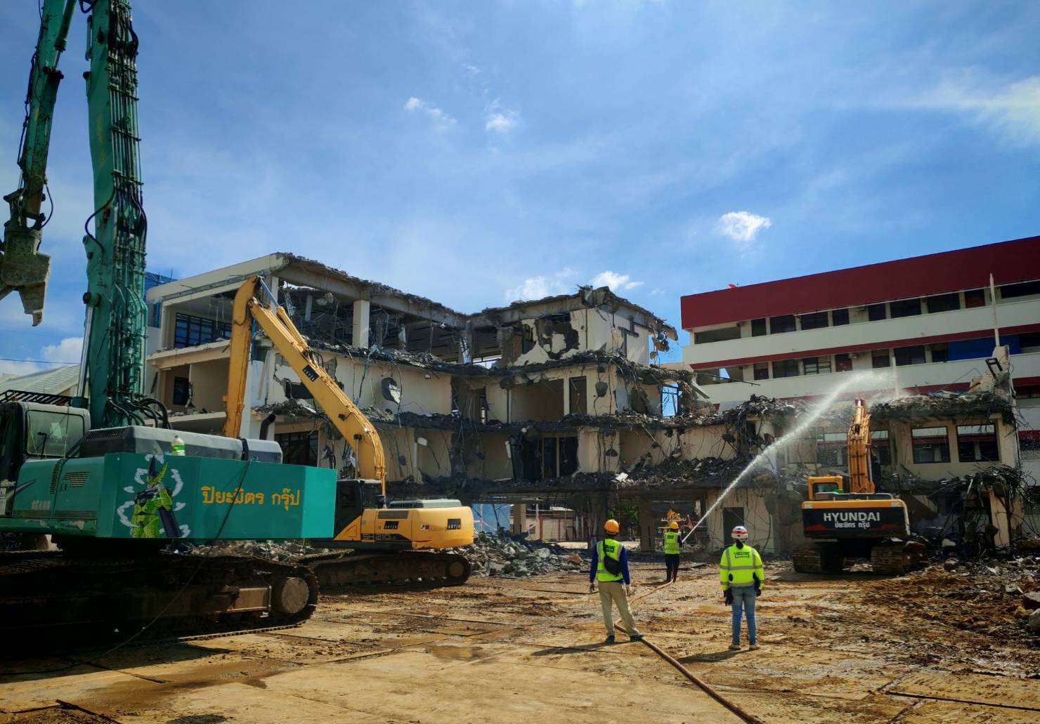วันที่ 23 ตุลาคม 2568 ความคืบหน้าการแก้ไขซ่อมแซมถนนสามเสนทรุดตัวหน้าโรงพยาบาลวชิรพยาบาล ผู้รับจ้างยังคงดำเนินการรื้อถอนอาคาร สน. สามเสนอย่างต่อเนื่อง โดยใช้รถแบคโฮติดหัวหนีบตัดคอนกรีต 2 คัน พร้อมเคลียร์เศษซากออกนอกพื้นที่