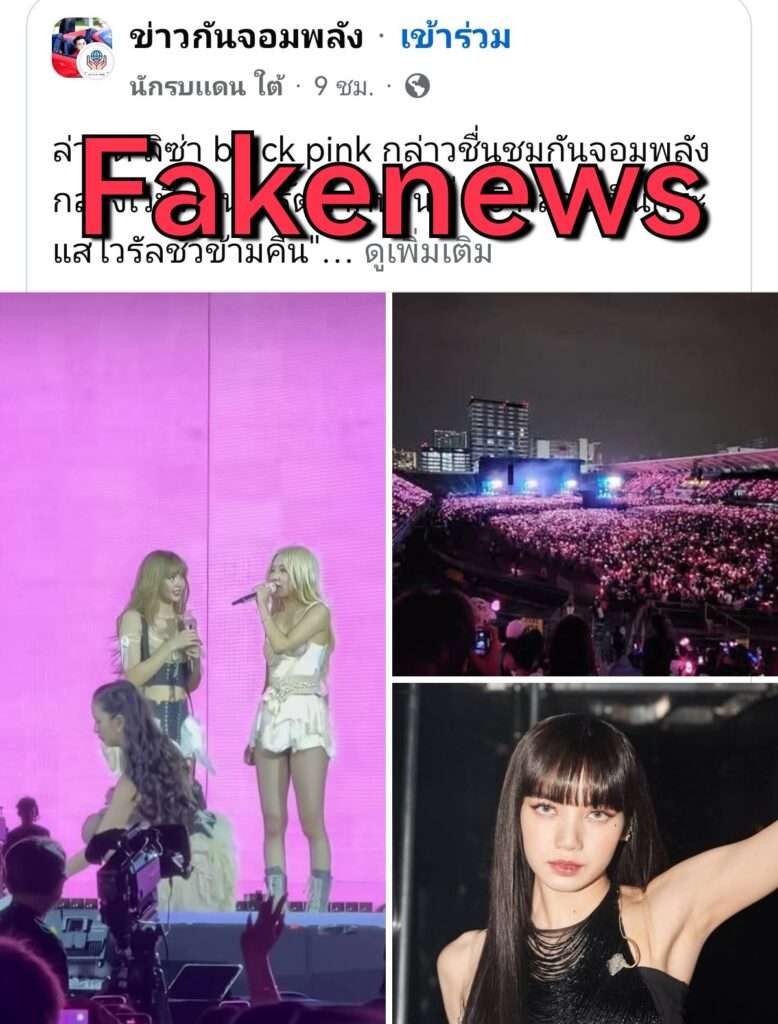 อย่างไรก็ตาม จากการตรวจสอบพบว่าเป็นข่าวปลอม และลิซ่าไม่ได้พูดบนเวทีคอนเสิร์ตตามที่มีการกล่าวอ้าง ล่าสุด ไอซ์ รักชนก ศรีนอก สส.พรรคประชาชน โพสต์ข้อความเตือนว่า ข่าวดังกล่าวเป็น ข่าวปลอม พร้อมระบุว่า