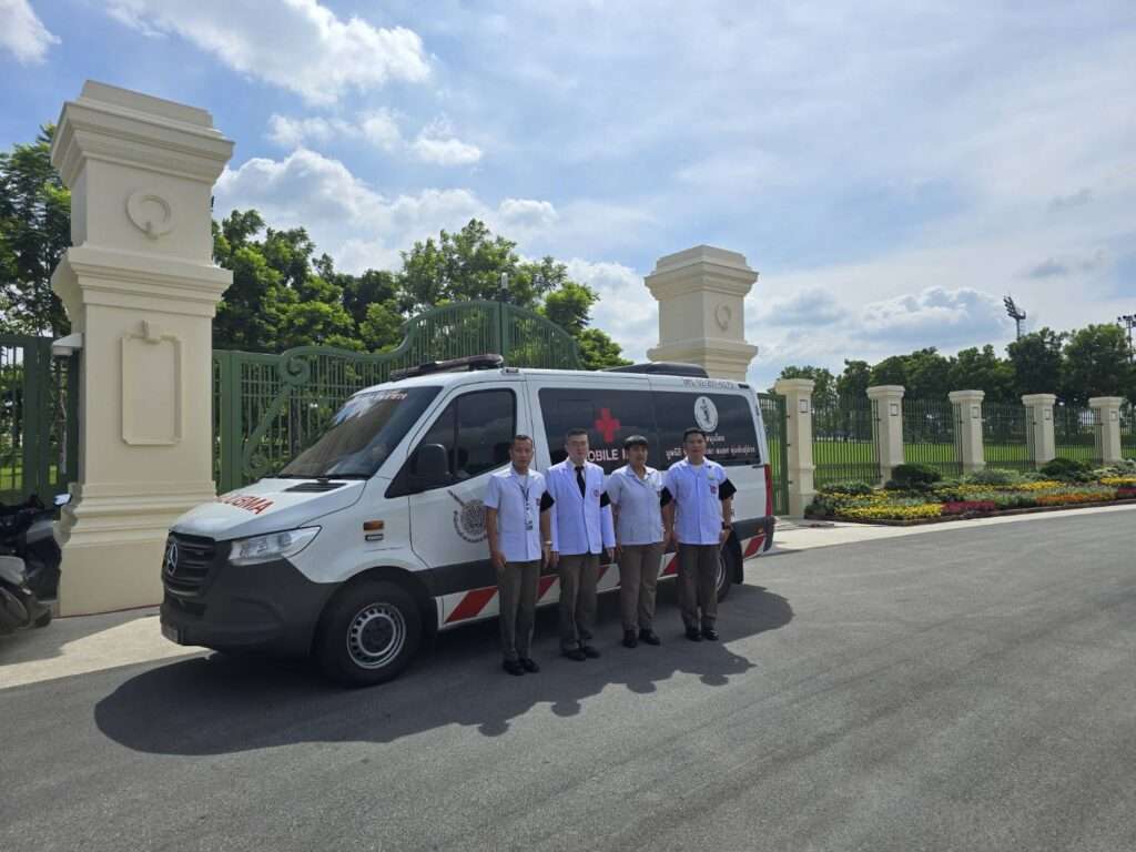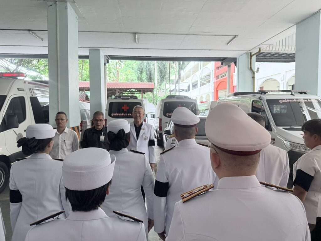 ทั้งนี้ ในเวลา 12.20 น. รักษาราชการเเทนนายเเพทย์ใหญ่ พร้อมคณะ ได้ลงพื้นที่ตรวจเยี่ยมศูนย์ส่งกลับและรถพยาบาลของโรงพยาบาลตำรวจ ที่พร้อมปฏิบัติหน้าที่สนับสนุนภารกิจในการดูเเลพี่น้องประชาชนร่วมกับหน่วยเเพทย์ต่าง ๆ เเละกองแพทย์หลวง พระบรมมหาราชวัง โดยรักษาราชการเเทนนายเเพทย์ใหญ่ ได้เน้นย้ำถึงความสำคัญของภารกิจ การปฏิบัติด้วยความระมัดระวัง สุภาพ สำรวม และรักษามาตรฐานวิชาชีพทางการแพทย์อย่างเคร่งครัด