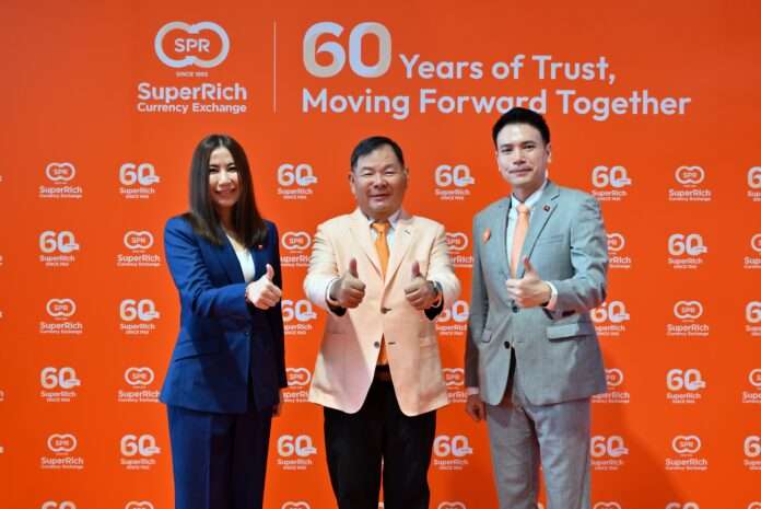 น.ส.ณธษา เหล่าอาภากุล ผู้บริหารสูงสุดบริหารธุรกรรมการเงิน ธนาคาร ซีไอเอ็มบี ไทย ร่วมแสดงความยินดีกับนายปิยะ ตันติเวชยานนท์ ประธานเจ้าหน้าที่บริหาร บริษัท ซุปเปอร์ริช เคอเรนซี่ เอ็กซ์เชนจ์ (1965) จำกัด หรือ “ซุปเปอร์ริช 1965 (สีส้ม)” ในโอกาสครบรอบ 60 ปี และในฐานะที่ใช้บริการโอนเงินด่วนข้ามประเทศ “SpeedSend” ของกลุ่มซีไอเอ็มบี ภายใต้ชื่อบริการ “SuperRich Money Transfer”