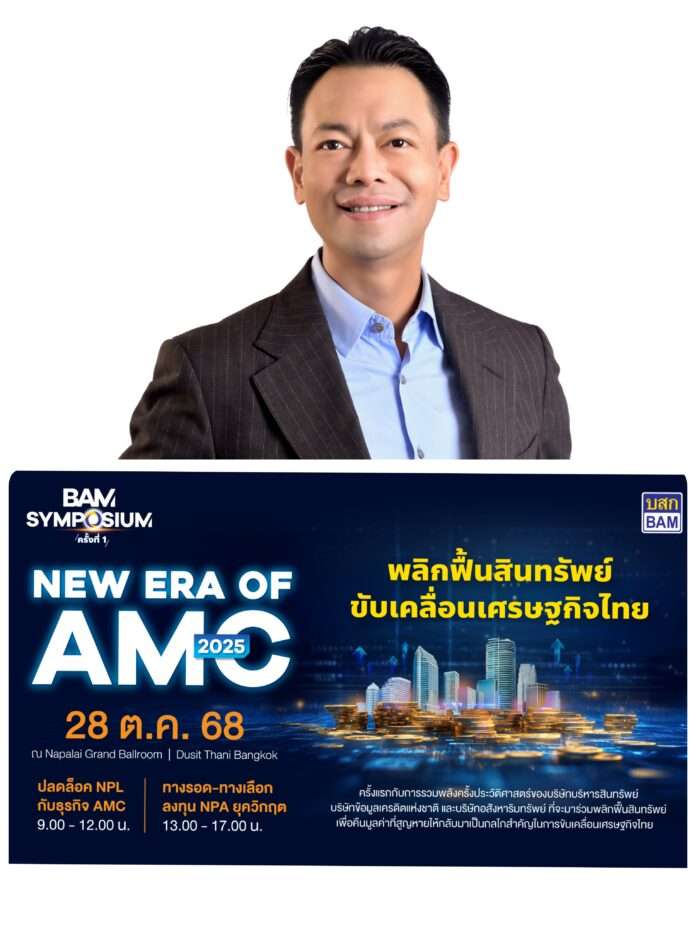 BAM ในฐานะผู้นำธุรกิจ AMC เตรียมจัดงานสัมมนาครั้งประวัติศาสตร์ BAM SYMPOSIUM : New Era of AMC 2025 ด้วยการผนึกกำลังหน่วยงานสำคัญไม่ว่าจะเป็นบริษัทบริหารสินทรัพย์ บริษัทข้อมูลเครดิตแห่งชาติ และบริษัทอสังหาริมทรัพย์ชั้นนำ มาร่วมแสดงวิสัยทัศน์การบริหารจัดการ NPLs และการลงทุน NPAs ในมิติใหม่ สำหรับงานเวทียิ่งใหญ่ที่สุดแห่งปีของธุรกิจ AMC ในวันที่ 28 ตุลาคม 2568