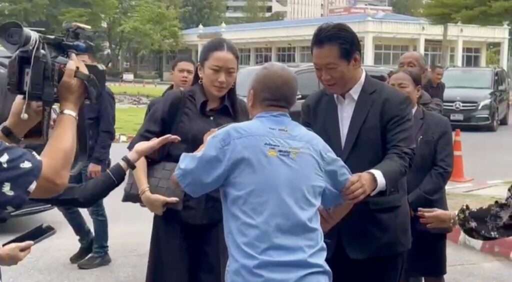 โดยในวันนี้นางสาวแพทองธาร และนายปิฎก สวมชุดสีดำไว้ทุกข์