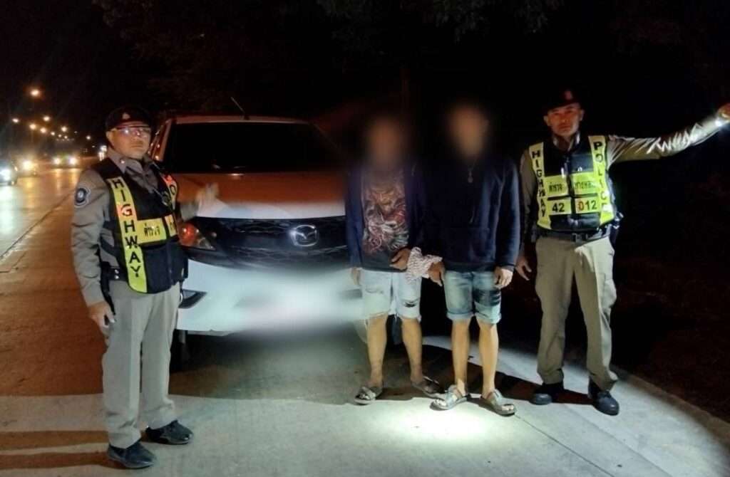 ต่อมา เจ้าหน้าที่ ส.ทล.2 กก.4 บก.ทล. ตั้งจุดตรวจบริเวณถนนมิตรภาพ กม.353–354 อ.เวฬุวัน จ.ขอนแก่น และตรวจพบรถต้องสงสัยจอดอยู่ริมทาง จึงเข้าตรวจสอบ พบผู้ต้องหา 2 คน คือ นายธีรภัทร อายุ 20 ปี และนายจิรโชติ อายุ 23 ปี (มีหมายจับศาลจังหวัดขอนแก่น ฐานพยายามฆ่าผู้อื่นและความผิดเกี่ยวกับอาวุธปืน)