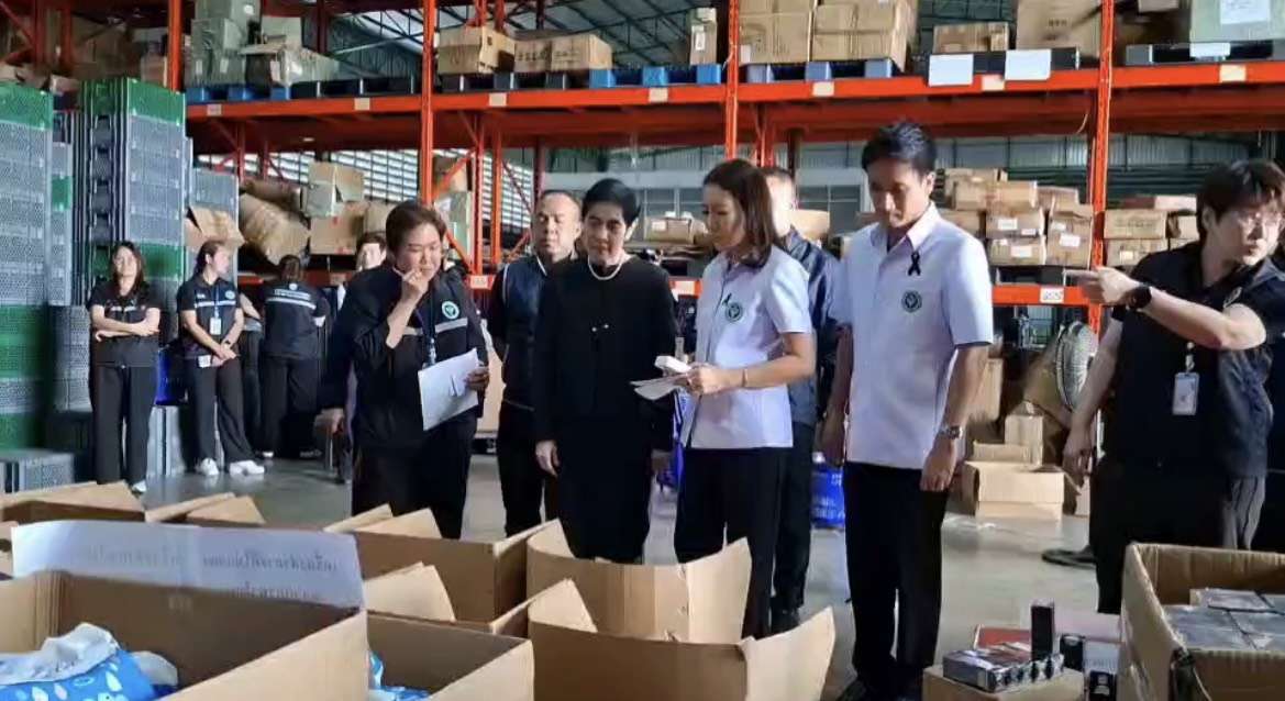 นางจิตตรา หมีทองธนกรณ์ เลขานุการรัฐมนตรีว่าการกระทรวงสาธารณสุข ระบุว่า ที่โกดังแห่งนี้เคยมีการตรวจค้นแล้ว 1 ครั้ง เมื่อ 11 ม.ค. 67 พบสินค้าผิดระเบียบ อย.เป็นประเภทน้ำยาย้อมสีผม ที่มีคนซื้อไปใช้แล้วเกิดผมร่วงหนัก ขณะนี้อยู่ระหว่างดำเนินคดีทางกฎหมายกับคนนำเข้าและจำหน่ายสินค้า / ในครั้งนี้ก็พบสินค้าผิดระเบียบ อย.หลายประเภท ทั้งน้ำย้อมผม ผ้าอนามัย ครีมกันแดด ครีมบำรุงผิว ซึ่งต้องจัดการอย่างเด็ดขาด ไม่มีผ่อนปรน / และสินค้าทุกประเภทจะถูกเก็บตัวอย่างให้กับทางกรมวิทยาศาสตร์การแพทย์ตรวจสอบว่ามีส่วนผสมอะไรบ้าง