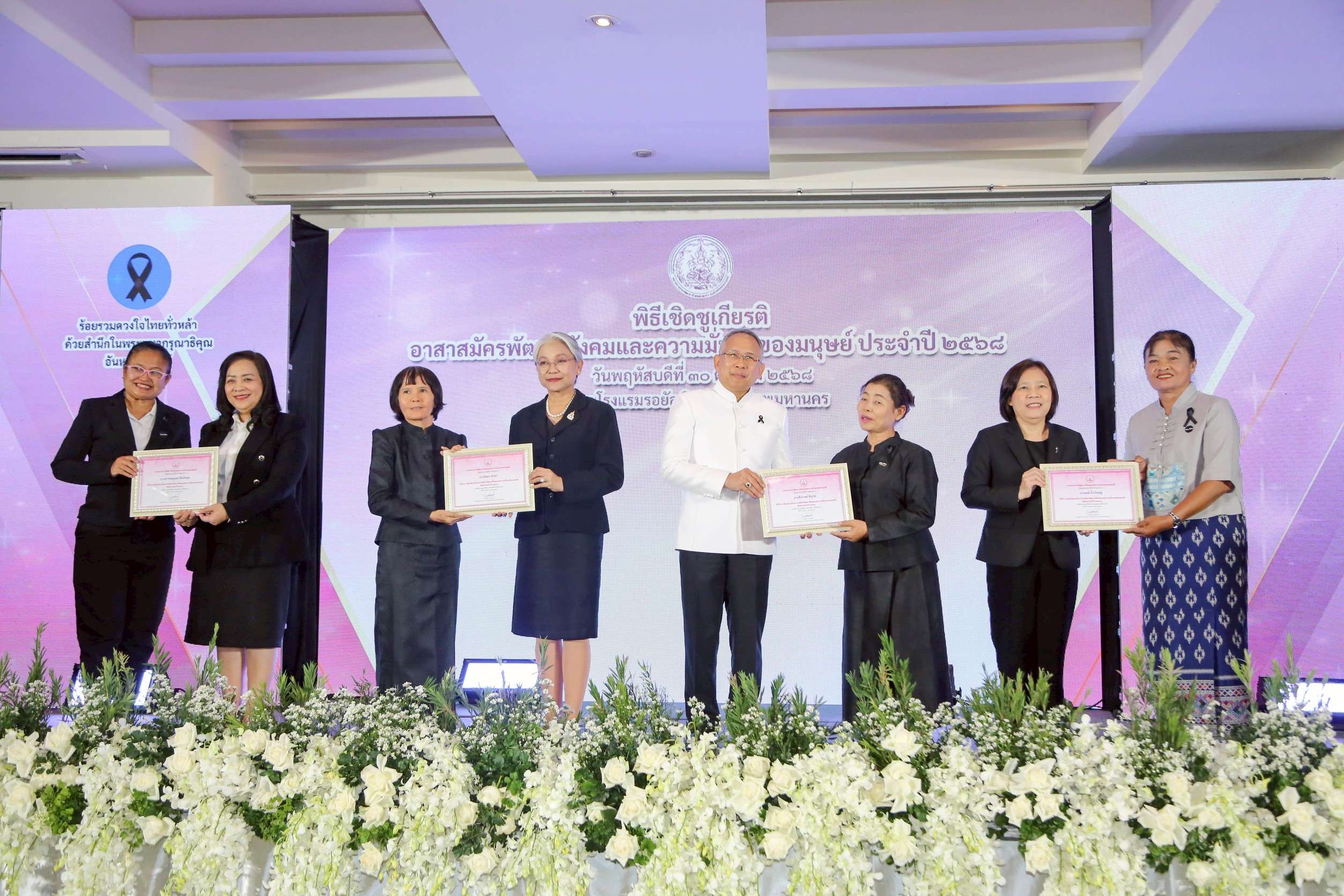 วันที่ 30 ตุลาคม 2568 นายกันตพงศ์ รังษีสว่าง ปลัดกระทรวงการพัฒนาสังคมและความมั่นคงของมนุษย์ (ปลัด พม.) เป็นประธานในพิธีเชิดชูเกียรติอาสาสมัครพัฒนาสังคมและความมั่นคงของมนุษย์ (อพม.) ประจำปี 2568 เพื่อยกย่องเชิดชูเกียรติแก่บุคคล และองค์กรต้นแบบที่อุทิศตนทำงานเพื่อสังคม พร้อมมอบโล่เชิดชูเกียรติและเกียรติบัตรแก่ อพม. และองค์กรดีเด่นทั่วประเทศ ประกอบด้วย อพม. ดีเด่นพิเศษ จำนวน 59 ราย , อพม. ดีเด่น จำนวน 204 ราย , อพม. ที่ผ่านการรับรองมาตรฐานการปฏิบัติงาน จำนวน 45 ราย , องค์กรที่ผ่านการรับรองมาตรฐานการจัดสวัสดิการสังคม จำนวน 16 ราย รวมทั้งสิ้น 324 ราย โดยมีนางสาวแรมรุ้ง วรวัธ รักษาราชการแทนอธิบดีกรมพัฒนาสังคมและสวัสดิการ (พส), นางจตุพร โรจนพานิช รองปลัดกระทรวง พม. รักษาราชการแทนอธิบดีกรมกิจการสตรีและสถาบันครอบครัว และนางสาวสุนีย์ ศรีสง่าตระกูล รองปลัดกระทรวง พม. ร่วมมอบโล่เชิดชูเกียรติและเกียรติบัตร