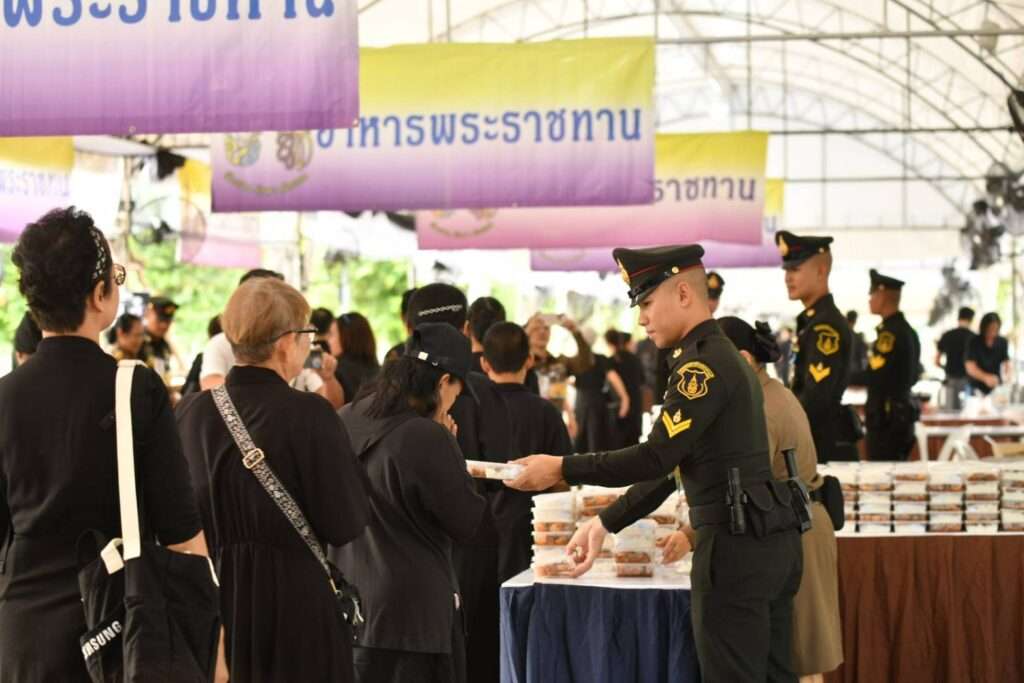 การระดมจิตอาสา: ศูนย์ประสานงานจิตอาสาพระราชทาน (ศอ.จอส.พระราชทาน) ภาค 1 (ส่วนหน้า) ได้จัดกำลังจิตอาสาพระราชทาน โดยมีนักศึกษาวิชาทหารร่วมสมทบ รวมทั้งสิ้น 90 คน ปฏิบัติหน้าที่ใน 6 จุดหลัก ได้แก่ 1.ป้ายรถเมล์ฝั่งมหาวิทยาลัยธรรมศาสตร์ 2.ป้ายรถเมล์ฝั่งตรงข้ามมหาวิทยาลัยธรรมศาสตร์ 3.จุดพักคอยเข้าสักการะบริเวณสนามหลวง 4.อุโมงค์ทางลอดหน้าพระลาน 5.จุดคัดกรองประตูมณีนพรัตน์ 6.ด้านทางออกประตูเทวาภิรมย์