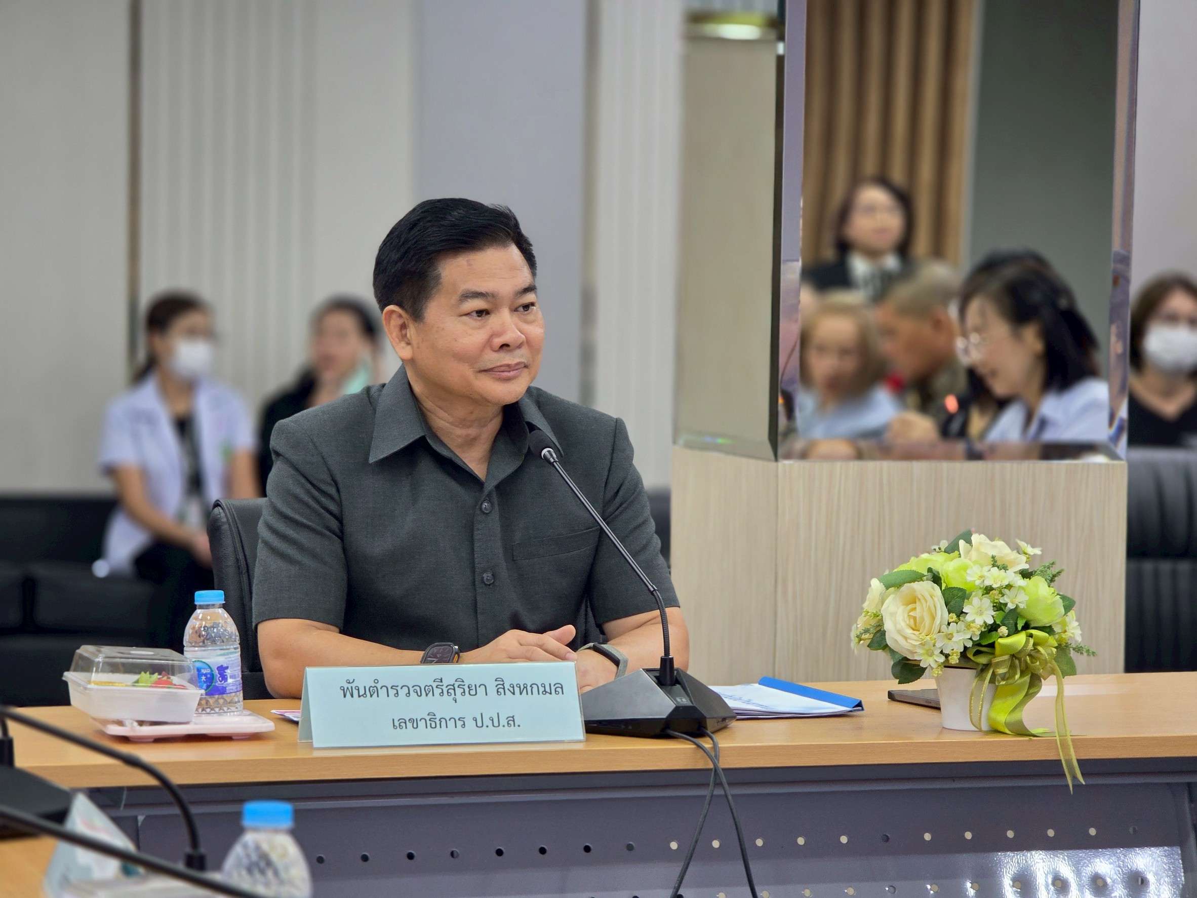 เมื่อวันที่ 30 ตุลาคม 2568 พ.ต.ต.สุริยา สิงหกมล เลขาธิการ ป.ป.ส. พร้อมด้วยนายเพิ่มพงษ์ เชาวลิต นางบังอร คงเพ็ชร ว่าที่ร้อยตรีอากาศ ปานแย้ม ที่ปรึกษาสำนักงาน ป.ป.ส. นายทิพเมษฐ์ สังขวรรณะ ผอ.ปปส.ภ.1 และคณะ ลงพื้นที่ตรวจเยี่ยม กำกับ และติดตามการดำเนินงานด้านการบำบัดรักษาในพื้นที่ จ.พระนครศรีอยุธยา ตามนโยบายเร่งด่วนของรัฐบาล เพื่อสร้างสังคมปลอดภัยและลดความเดือดร้อนของประชาชน.โดยได้รับฟังรับรูปแบบการดำเนินการดูแลผู้ป่วยยาเสพติดที่มีอาการทางจิตและก่อความรุนแรง (SMI-V Care as a Harm Reduction) ของโรงพยาบาลท่าเรือ ซึ่งปัญหาด้านสุขภาพจิตและยาเสพติดในอำเภอท่าเรือ พบว่า เป็นผู้ป่วยจิตเวชและยาเสพติดที่มีพฤติกรรมรุนแรงและไม่ได้เข้าสู่ระบบการบำบัด ส่งผลให้ครอบครัวและชุมชนได้รับผลกระทบจากพฤติกรรมของผู้ป่วยจิตเวชและยาเสพติด