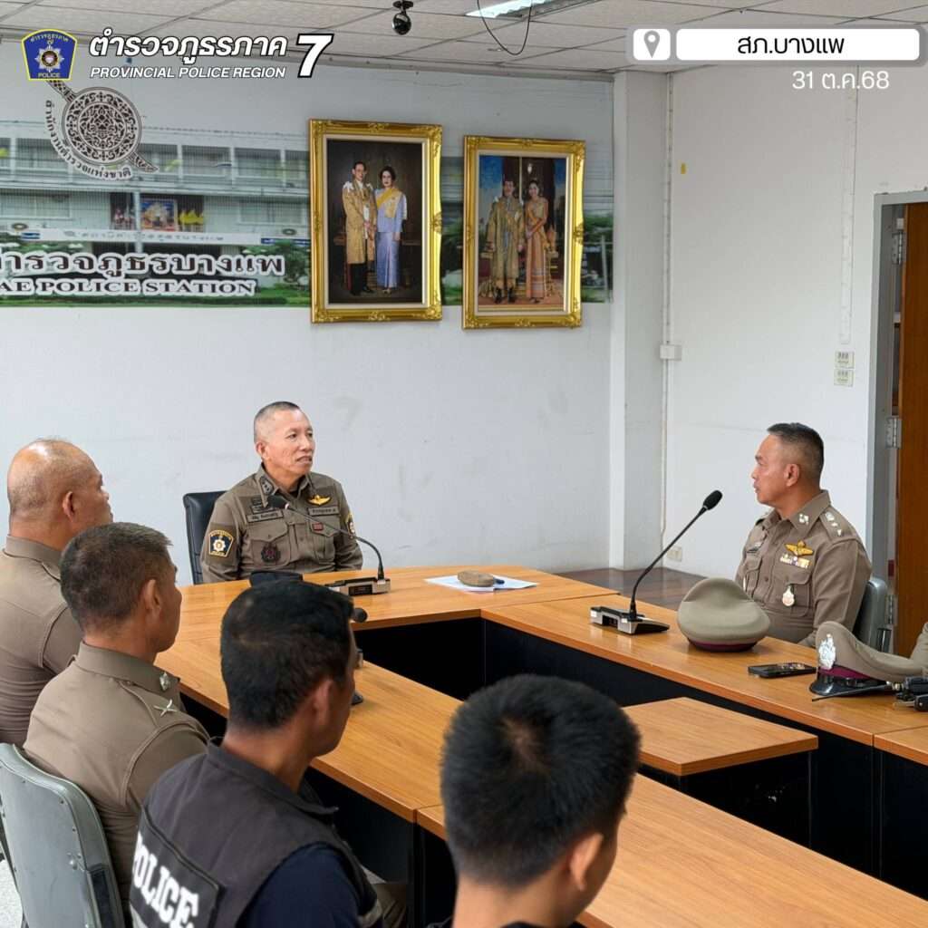 วันศุกร์ที่ 31 ตุลาคม 2568 เวลา 14.20 น.พล.ต.ท.พิสิฐ ตันประเสริฐ ผบช.ภ.7 ได้เดินทางมาตรวจเยี่ยม สภ.บางแพ จ.ราชบุรี พบ พ.ต.อ.สมมาตร จันทรัตน์ ผกก.สภ.บางแพ พร้อมข้าราชการตำรวจในสังกัดอยู่ปฏิบัติหน้าที่ เหตุการณ์โดยทั่วไปปกติ