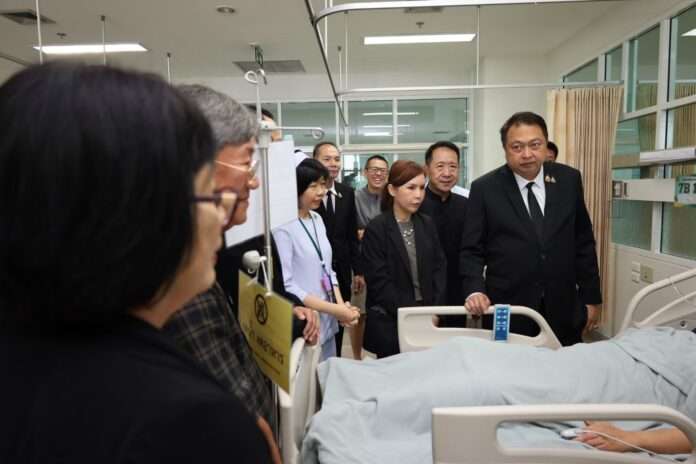ชลบุรี, วันที่ 1 พฤศจิกายน – นายสุชาติ ชมกลิ่น รองนายกรัฐมนตรี และรัฐมนตรีว่าการกระทรวงทรัพยากรธรรมชาติและสิ่งแวดล้อม พร้อมด้วยนายนริศ นิรามัยวงศ์ ผู้ว่าราชการจังหวัดชลบุรี นพ.วิศิษฎ์ ผลสวัสดิ์ รองนายแพทย์สาธารณสุขจังหวัดชลบุรี และคณะผู้บริหารโรงพยาบาลมหาวิทยาลัยบูรพา ได้เดินทางเข้าเยี่ยมผู้ได้รับบาดเจ็บอย่างใกล้ชิด เพื่อให้กำลังใจและติดตามความช่วยเหลืออย่างเร่งด่วน