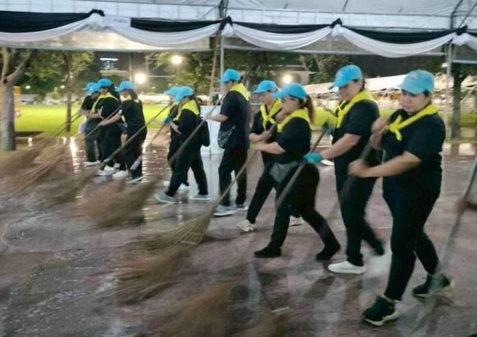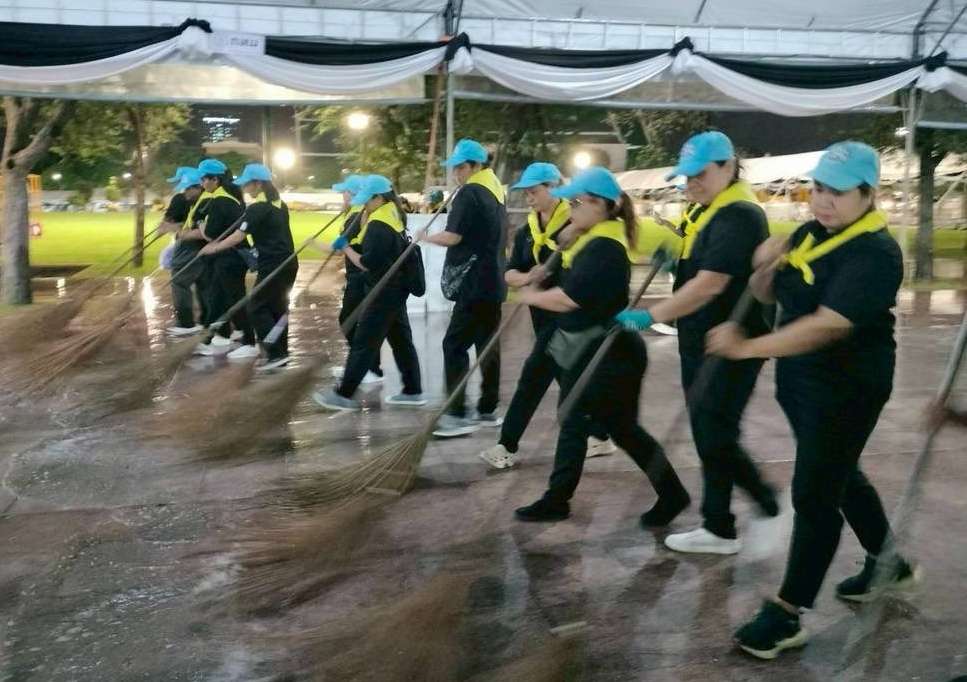 กทม. Big Cleaning จุดพักคอยท้องสนามหลวง งานพระราชพิธีพระบรมศพ สมเด็จพระพันปีหลวง