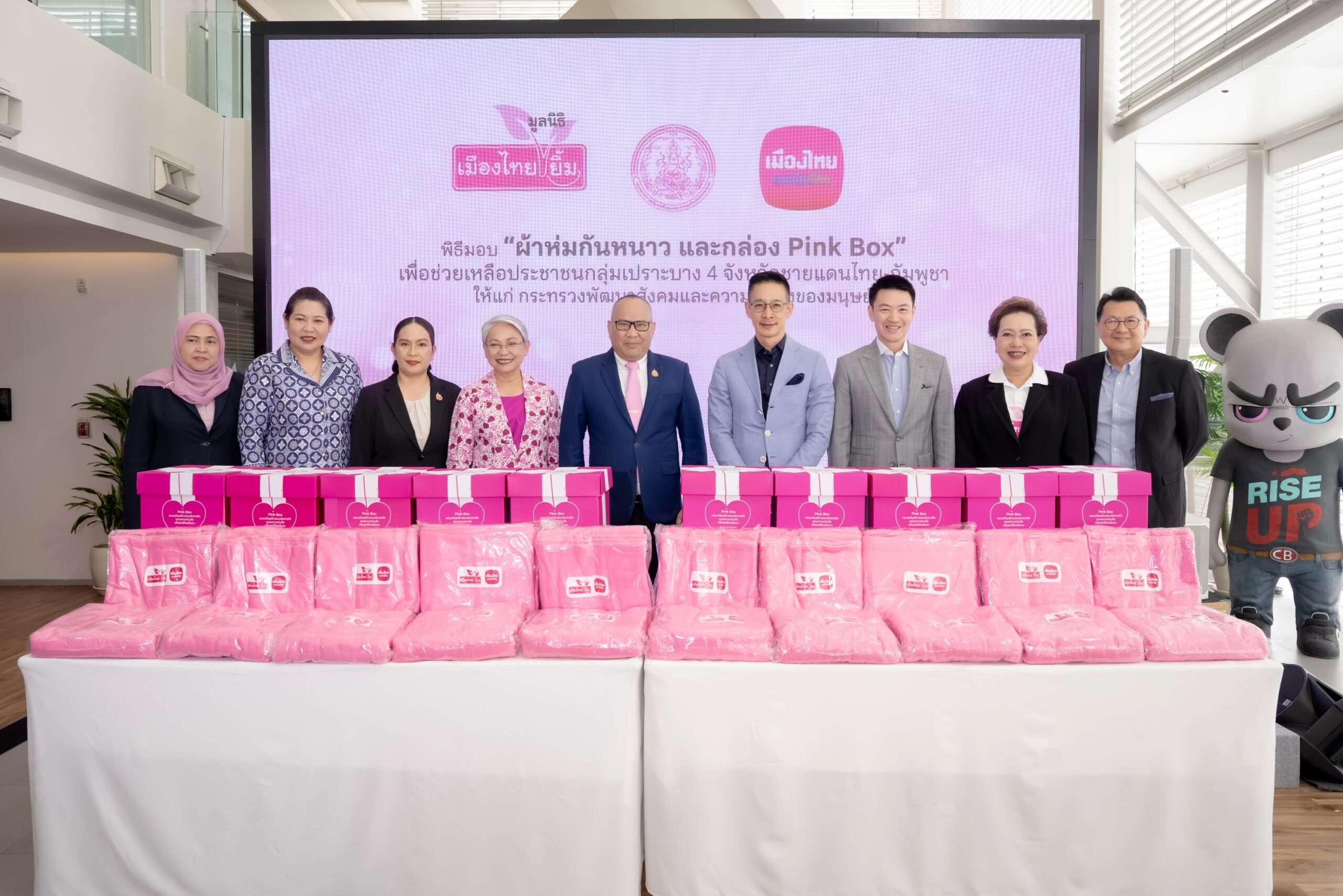เมืองไทยประกันชีวิตและมูลนิธิเมืองไทยยิ้ม ร่วมเดินหน้าสานต่อภารกิจ “ส่งต่อความอบอุ่น สู่หัวใจคนไทย” มอบผ้าห่มกันหนาวและกล่อง “Pink Box” เพื่อช่วยเหลือประชาชนกลุ่มเปราะบางให้แก่กระทรวงการพัฒนาสังคมและความมั่นคงของมนุษย์ ภายใต้โครงการ “พม.ใกล้คุณ” ร่วมบรรเทาทุกข์และเตรียมพร้อมรับมือภัยหนาวในช่วงปลายปี สะท้อนเจตนารมณ์ขององค์กร ในการส่งต่อความห่วงใยและสร้างรอยยิ้มให้กับสังคมไทยอย่างยั่งยืน