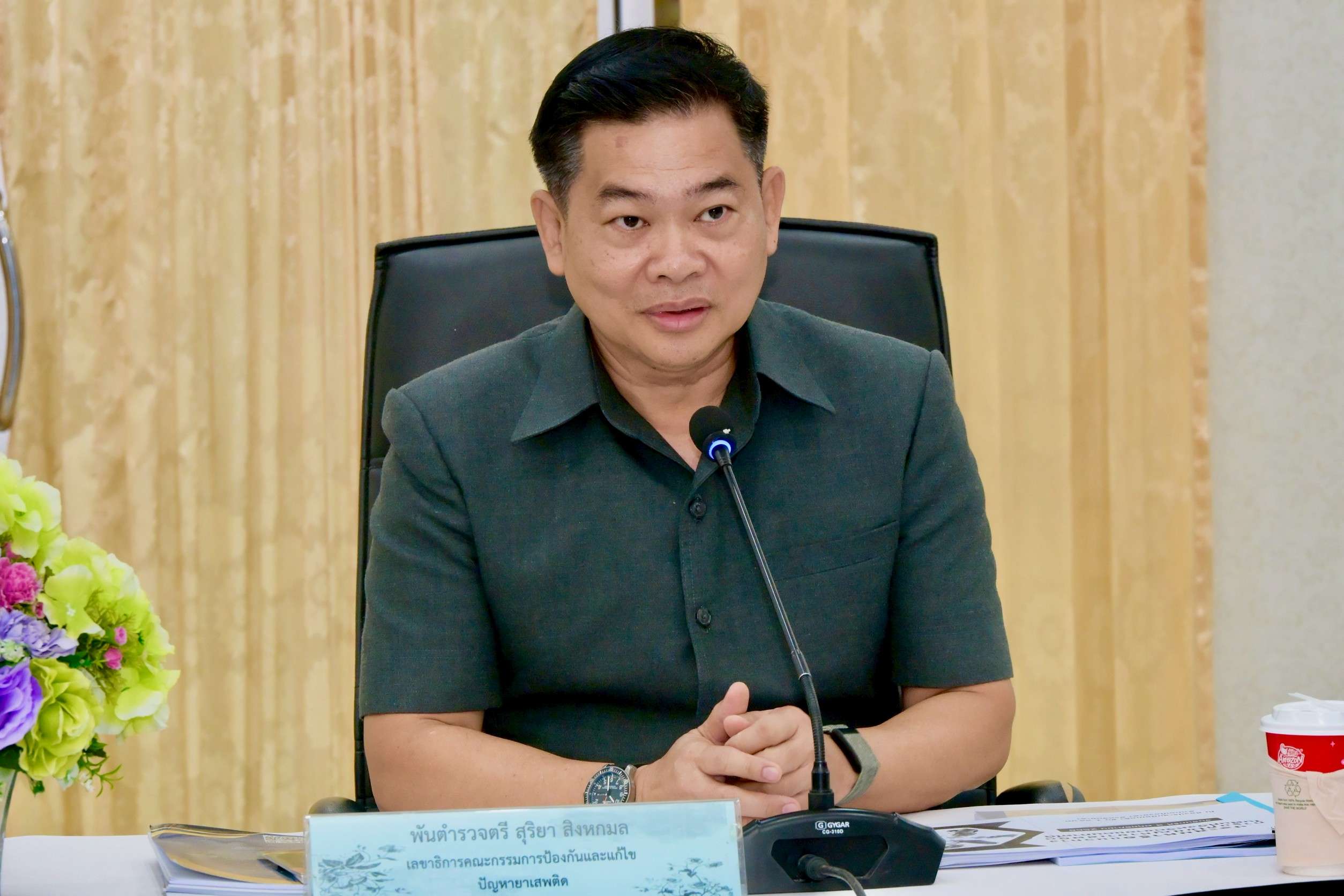 พ.ต.ต.สุริยา สิงหกมล กล่าวว่า การประชุมครั้งนี้เป็นการหารือร่วมกันระหว่างสำนักงาน ป.ป.ส. และผู้นำศาสนาในพื้นที่ 5 จังหวัดชายแดนภาคใต้ เพื่อรับฟังข้อเสนอแนะและแนวทางในการป้องกันปัญหายาเสพติด โดยเฉพาะใน 3 จังหวัดชายแดนภาคใต้ ซึ่งมีปัญหาการแพร่ระบาดอย่างต่อเนื่อง