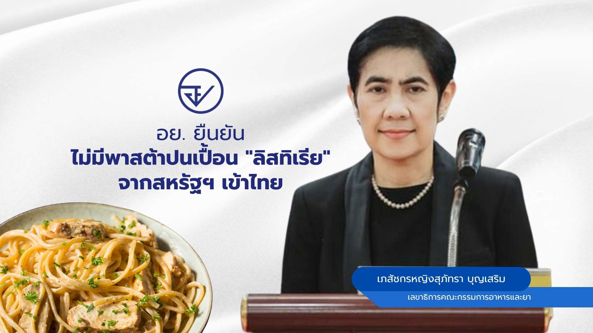 เภสัชกรหญิงสุภัทรา บุญเสริม เลขาธิการคณะกรรมการอาหารและยา เปิดเผยว่า จากกรณีที่ศูนย์ควบคุมและป้องกันโรคแห่งสหรัฐอเมริกา (CDC) รายงานการระบาดของเชื้อแบคทีเรีย ลิสทิเรีย โมโน-ไซโตจิเนส (Listeria monocytogenes) ในอาหารพาสต้าพร้อมทาน ส่งผลให้มีผู้ป่วย 27 ราย และเสียชีวิตถึง 6 ราย ในสหรัฐฯ นั้น สำนักงานคณะกรรมการอาหารและยา (อย.) ได้ตรวจสอบอย่างเร่งด่วนแล้วและขอยืนยันว่า ไม่มีผลิตภัณฑ์พาสต้าที่ถูกเรียกคืนทั้ง 2 รายการ (Marketside Grilled Chicken Alfredo with Fettuccine และ Home Chef Heat & Eat Chicken Fettuccine Alfredo) นำเข้ามาจำหน่ายในประเทศไทย