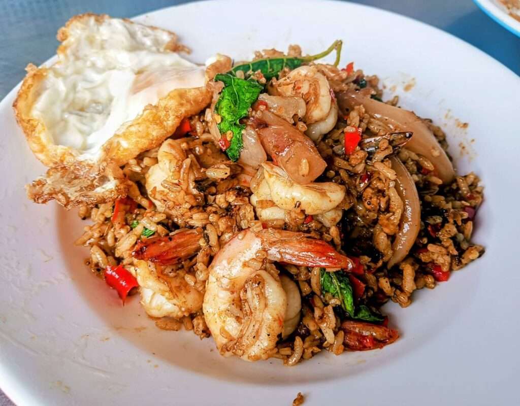 เมนูที่ 3 ข้าวผัดกระเพราคลุกรวม ราคา 80 บาท ข้าวผัดเมล็ดสวยร่วนเป็นตัว กุ้งหมูปลาหมึก จัดเต็ม ผัดคลุกเคล้าจนได้ที่ รสชาติดี กลมกล่อม อร่อยจนสมคำร่ำลือ