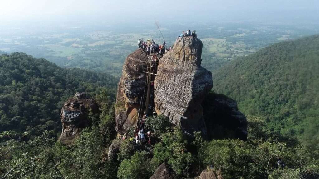 ยอดหินทั้งสามสูงราว 10 เมตร ตั้งเรียงรายเหนือหุบป่า สามารถมองเห็นวิวเมืองนครไทยได้กว้างไกลสุดสายตา ยามธงสีขาวสะบัดต้องแสงลมฤดูหนาว จึงราวกับเป็นสัญญาณแห่งความสงบ กตัญญู และความเชื่อมโยงจากอดีตสู่ปัจจุบัน
