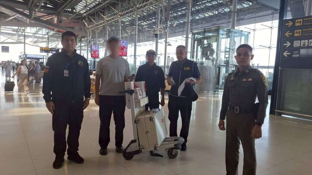 สถานที่จับกุม 1. ฝ่าย ตม.ขาเข้า ชั้น 2 สนามบินสุวรรณภูมิ ต.หนองปรือ อ.บางพลี จ.สมุทรปราการ