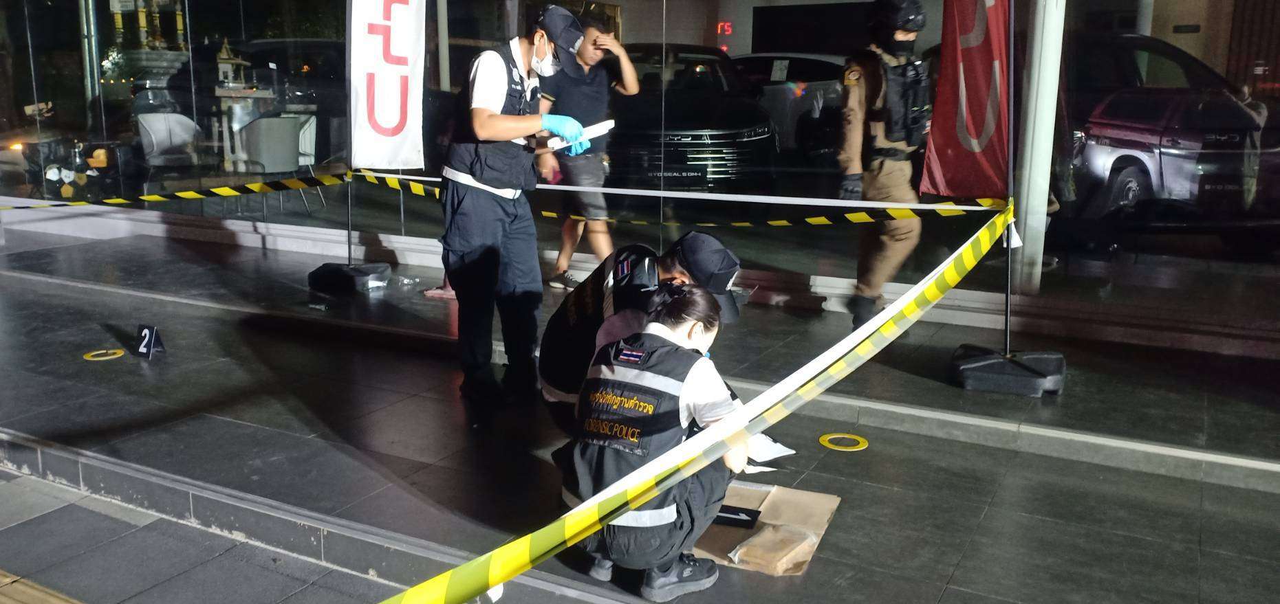 ที่เกิดเหตุบริเวณฟุตปาธ พบเพียงกองเลือดและปลอกกระสุนปืนกระจายเกลื่อนพื้นถนน รวม 5 ปลอก เจ้าหน้าที่กองพิสูจน์หลักฐาน(พฐ.)จึงบันทึกรวบรวมที่เกิดเหตุไว้เป็นหลักฐาน เหตุการณ์ดังกล่าวมีผู้บาดเจ็บ 3 ราย ทราบชื่อนายจิรายุทธ คงดี อายุ 27 ปีสภาพร่างกายมีบาดแผลถูกกระสุนปืนยิงที่คอ และนายอัครเดช ทวิสุวรรณ อายุ 36 ปีมีบาดแผลถูกกระสุนปืนยิงเข้าเหนือราวนมซ้าย โดยทั้ง 2 รายเป็นอาสามูลนิธิร่วมกตัญญู จึงนำตัวส่งโรงพยาบาลลาดพร้าว